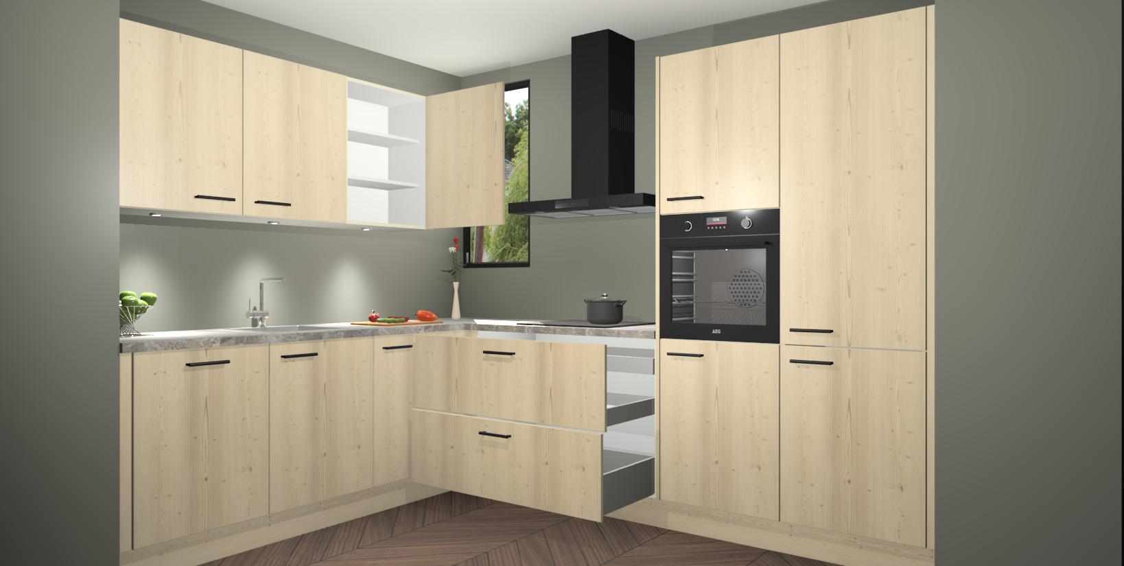 In deze box zijn alle kleuren verzameld van de deuren en werkbladen. Vraag de gratis kleurenbox aan en kijk thuis rustig verder!