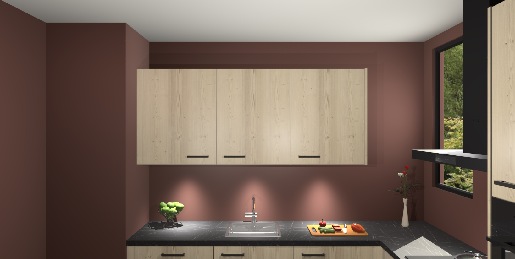 Maak u keuken elegant en verfijnd met de vuren keuken Buenos Aires! Dit prachtige stuk heeft warme kleuren voor een strak, modern gevoel dat u de adem zal benemen. De handgrepen heeft net als de binnenkant van de kasten dezelfde vuren afwerking, waardoor alles er nog beter uitziet.