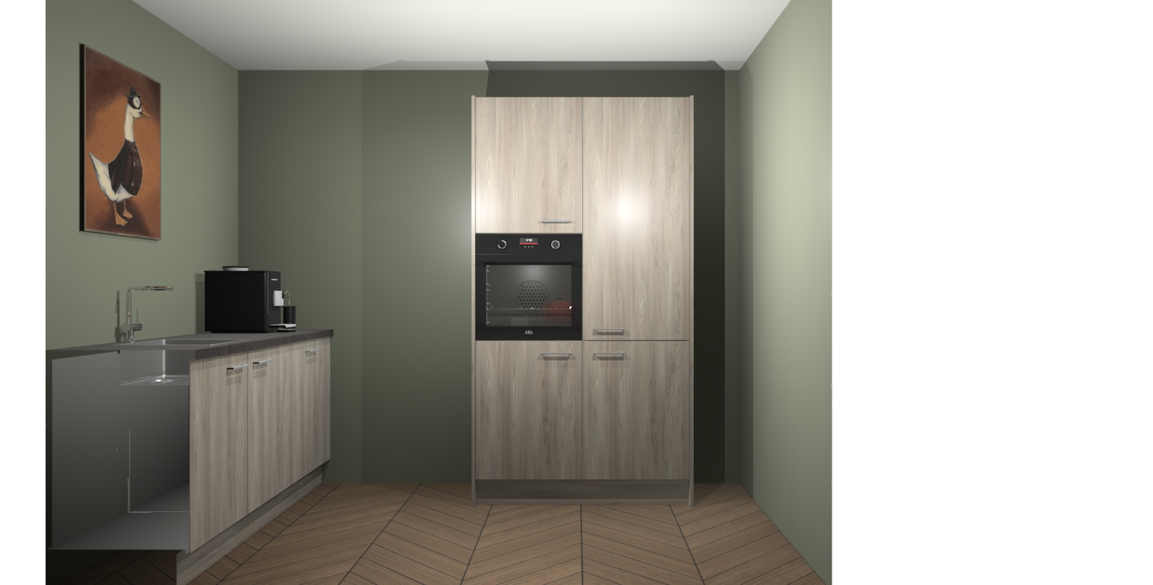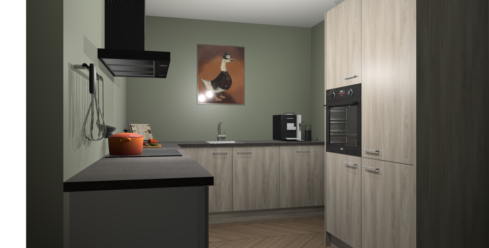 Met een modern, tijdloos design en ruime opslagruimte, zult u zich in no-time thuis voelen in uw nieuwe keuken. Uw leven wordt eenvoudiger met de soft-close deuren die voor het ultieme stille comfort zorgen - geen geluid dat u stoort terwijl u kookt. Ook is de keuken voorzien van 5 ingebouwde apparaten: een oven, inductie kookplaat, afzuigkap, vaatwasser en koelkast. Deze kunnen gemakkelijk na bestelling worden bijgewerkt naar AEG - waardoor uw luxe ervaring compleet is.