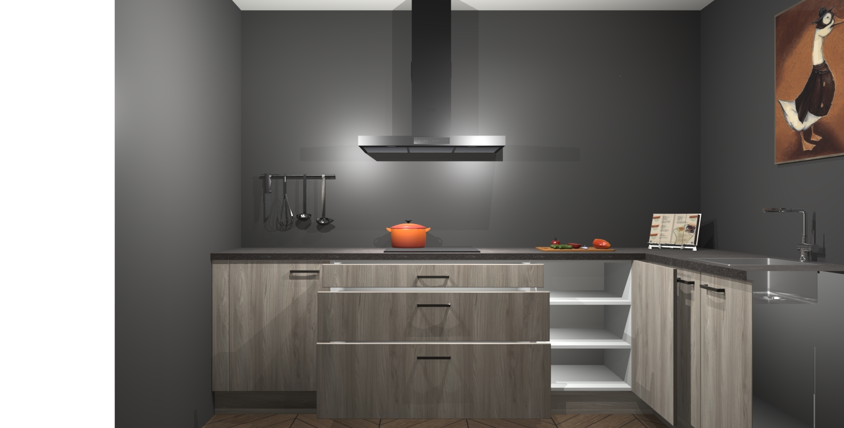 Met een modern, tijdloos design en ruime opslagruimte, zult u zich in no-time thuis voelen in uw nieuwe keuken. Uw leven wordt eenvoudiger met de soft-close deuren die voor het ultieme stille comfort zorgen - geen geluid dat u stoort terwijl u kookt. Ook is de keuken voorzien van 5 ingebouwde apparaten: een oven, inductie kookplaat, afzuigkap, vaatwasser en koelkast. Deze kunnen gemakkelijk na bestelling worden bijgewerkt naar AEG - waardoor uw luxe ervaring compleet is.