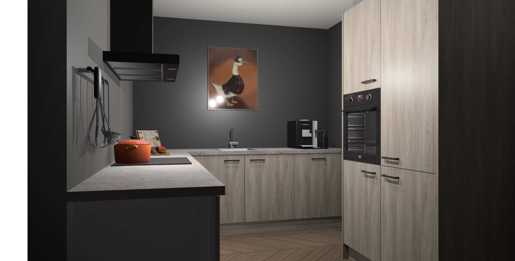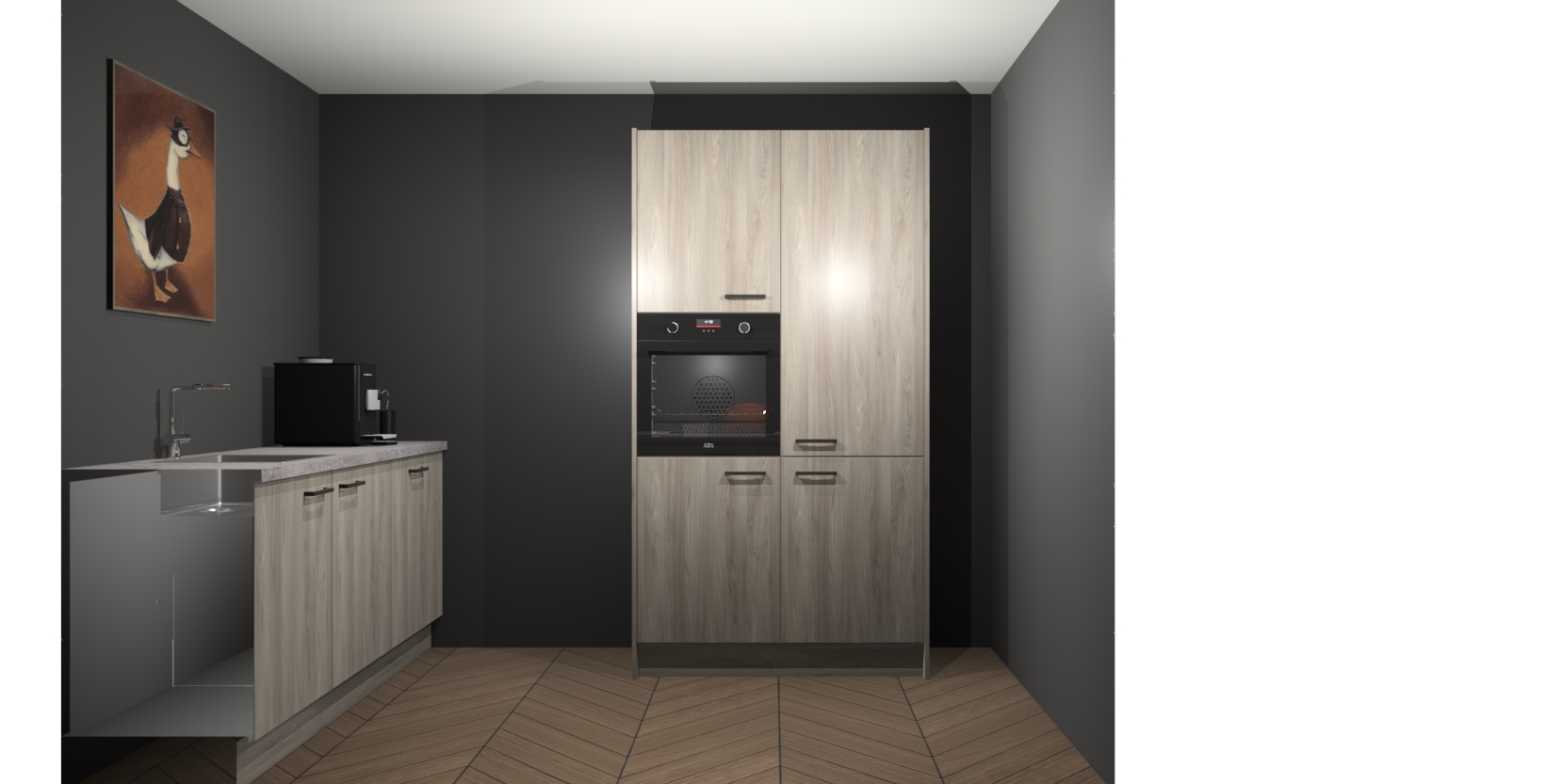 Met een modern, tijdloos design en ruime opslagruimte, zult u zich in no-time thuis voelen in uw nieuwe keuken. Uw leven wordt eenvoudiger met de soft-close deuren die voor het ultieme stille comfort zorgen - geen geluid dat u stoort terwijl u kookt. Ook is de keuken voorzien van 5 ingebouwde apparaten: een oven, inductie kookplaat, afzuigkap, vaatwasser en koelkast. Deze kunnen gemakkelijk na bestelling worden bijgewerkt naar AEG - waardoor uw luxe ervaring compleet is.