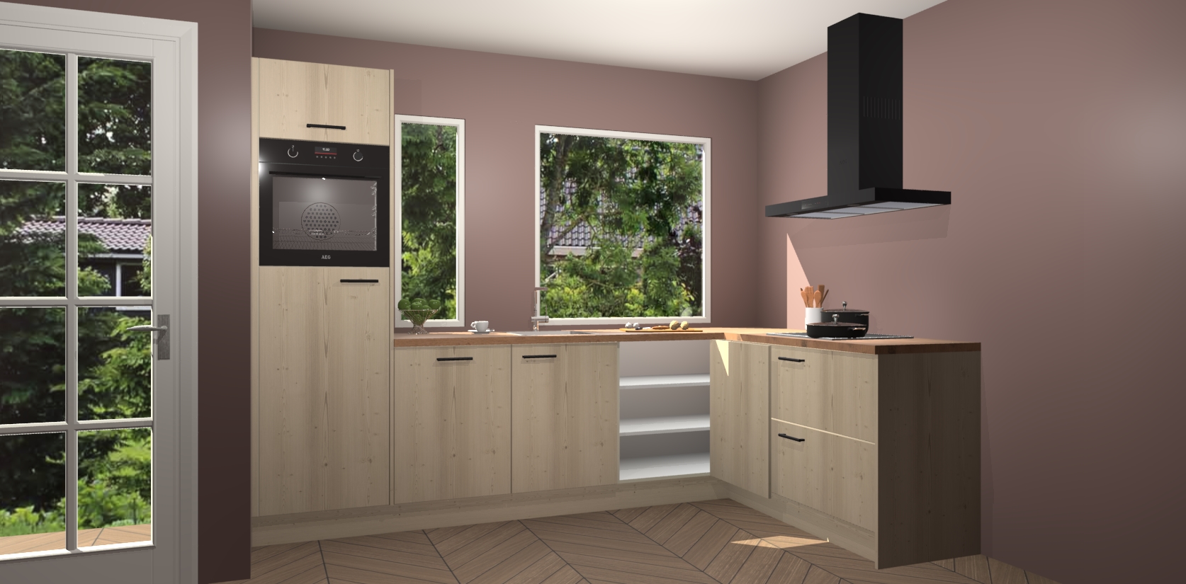 Deze complete keuken wordt geleverd met 5 inbouwapparaten: een oven, inductiekookplaat, afzuigkap, vaatwasser en koelkast. De toestellen kunnen na bestelling ook gemakkelijk worden opgewaardeerd naar AEG. Bovendien is elke deur in deze keuken voorzien van handige softclose technologie voor eenvoudig gebruik! Als een leuke toevoeging zit in deze keuken ook een carrousel, zo hoef je niet meer de hoek in duiken om iets te pakken.