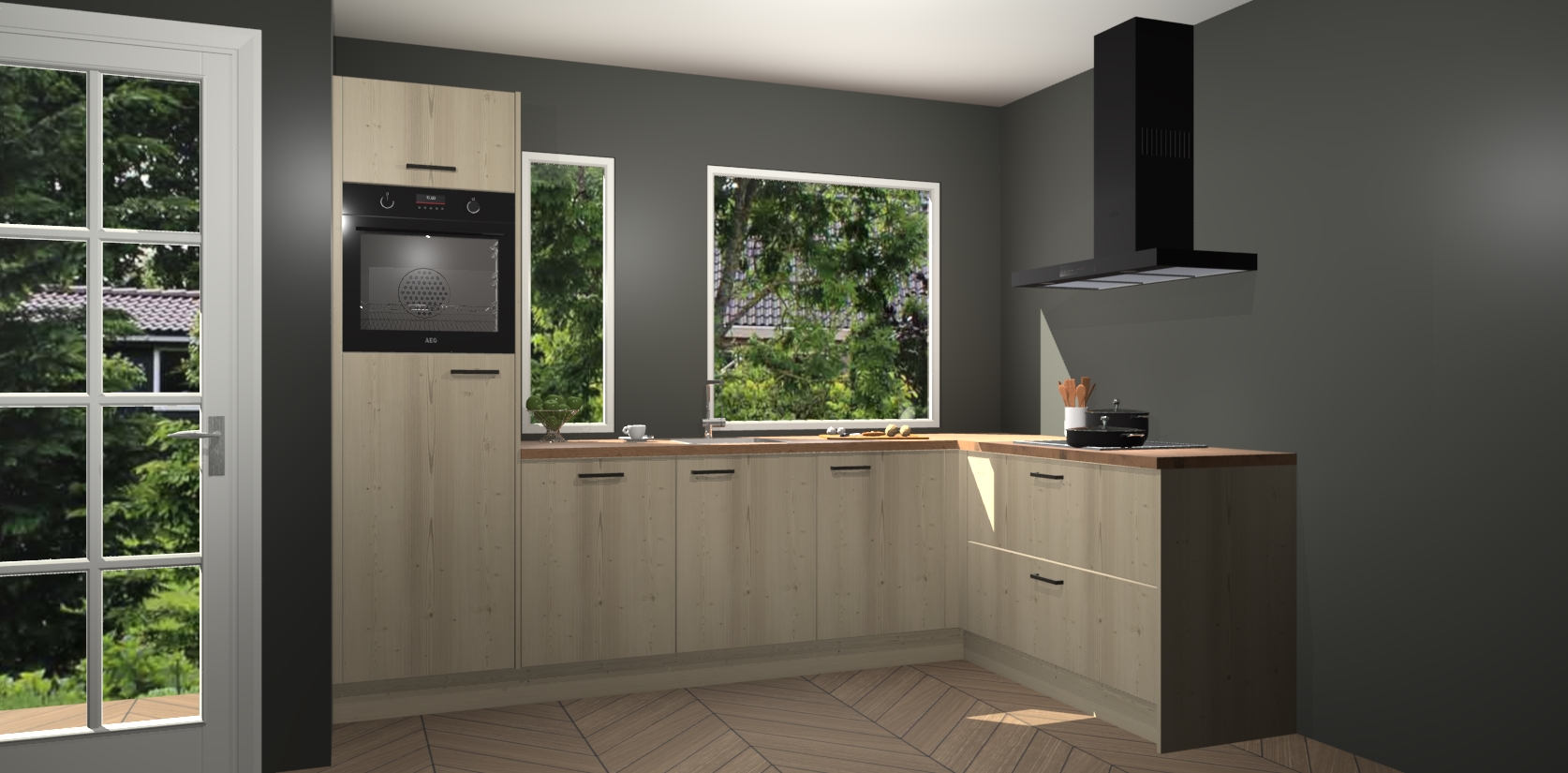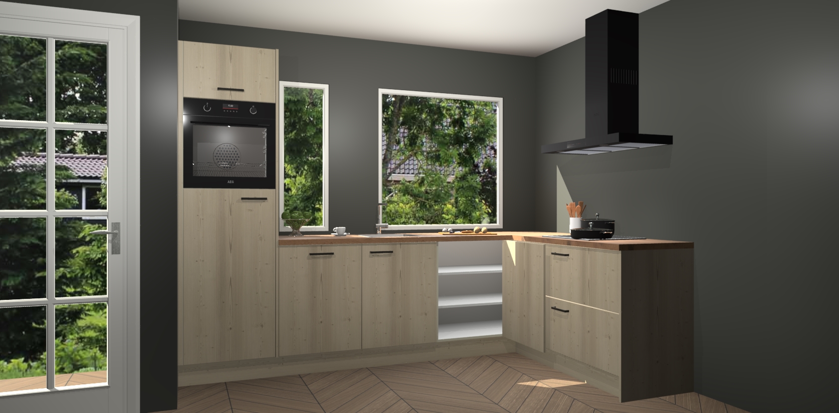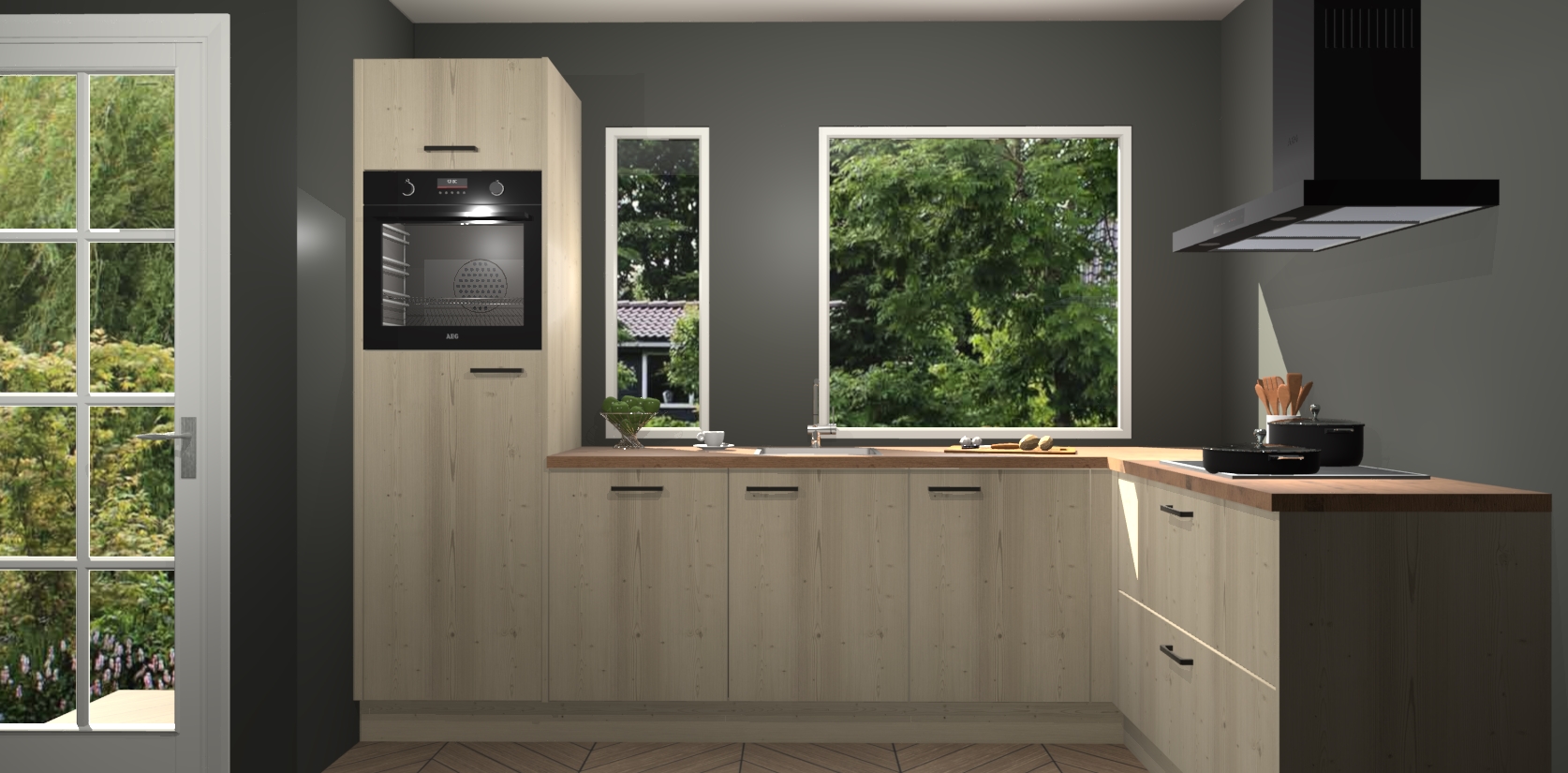 Deze complete keuken wordt geleverd met 5 inbouwapparaten: een oven, inductiekookplaat, afzuigkap, vaatwasser en koelkast.  De toestellen kunnen na bestelling ook gemakkelijk worden opgewaardeerd naar AEG. Bovendien is elke deur in deze keuken voorzien van handige softclose technologie voor eenvoudig gebruik! Als een leuke toevoeging zit in deze keuken ook een carrousel, zo hoef je niet meer de hoek in duiken om iets te pakken.