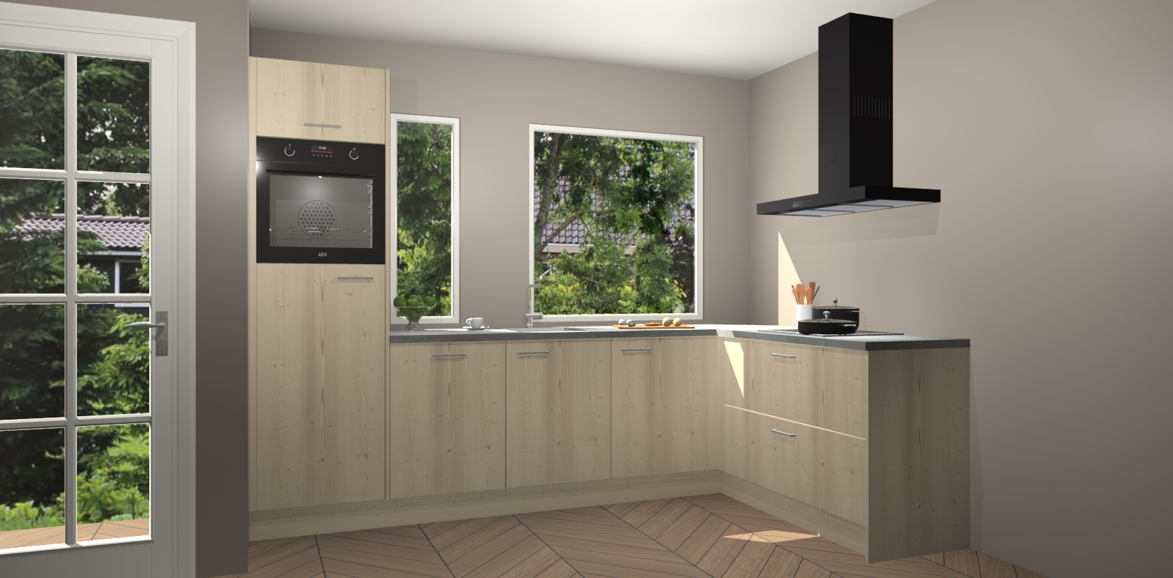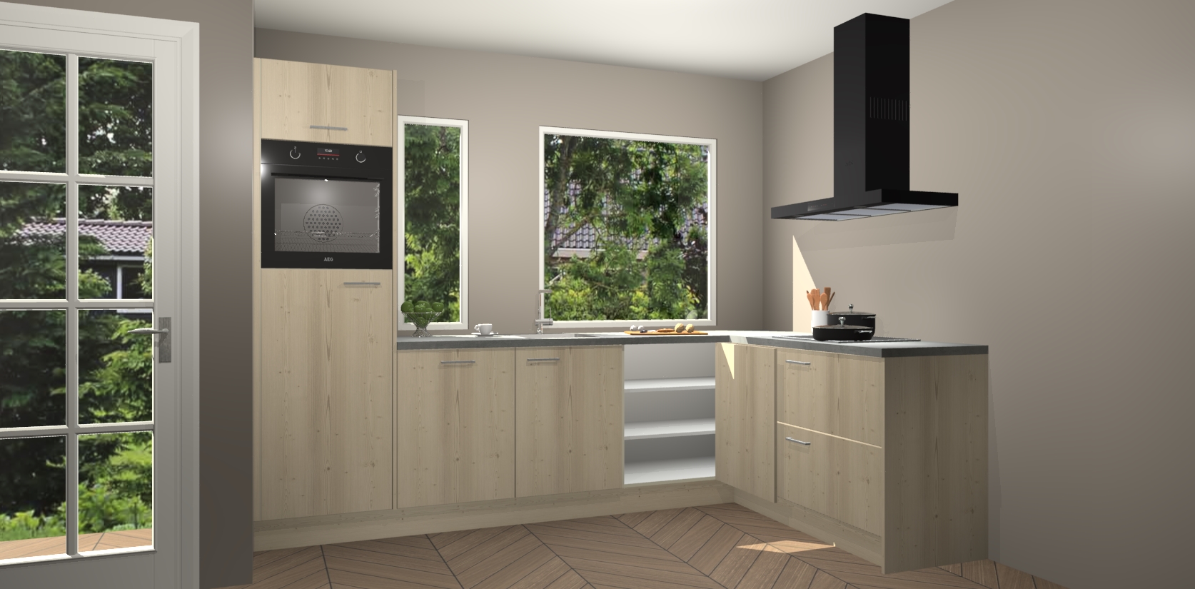 Deze complete keuken wordt geleverd met 5 inbouwapparaten: een oven, inductiekookplaat, afzuigkap, vaatwasser en koelkast. De toestellen kunnen na bestelling ook gemakkelijk worden opgewaardeerd naar AEG. Bovendien is elke deur in deze keuken voorzien van handige softclose technologie voor eenvoudig gebruik! Als een leuke toevoeging zit in deze keuken ook een carrousel, zo hoef je niet meer de hoek in duiken om iets te pakken.