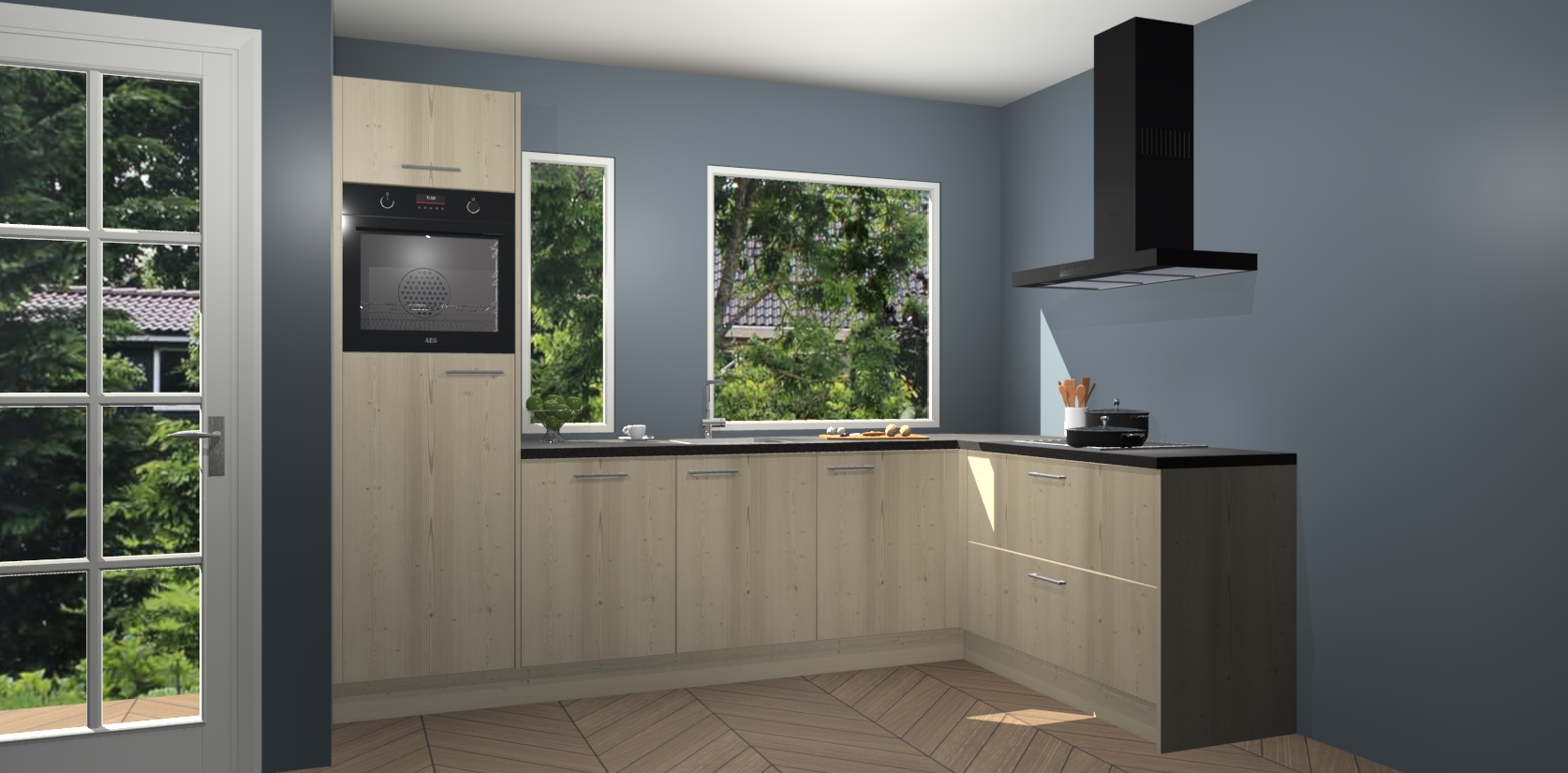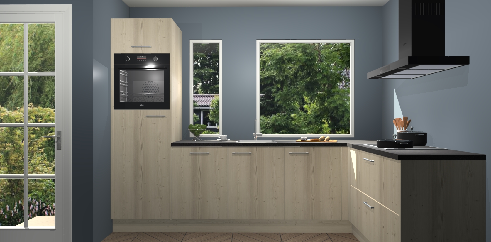 Deze complete keuken wordt geleverd met 5 inbouwapparaten: een oven, inductiekookplaat, afzuigkap, vaatwasser en koelkast. De toestellen kunnen na bestelling ook gemakkelijk worden opgewaardeerd naar AEG. Bovendien is elke deur in deze keuken voorzien van handige softclose technologie voor eenvoudig gebruik! Als een leuke toevoeging zit in deze keuken ook een carrousel, zo hoef je niet meer de hoek in duiken om iets te pakken.