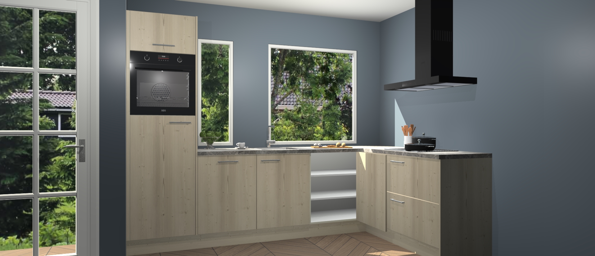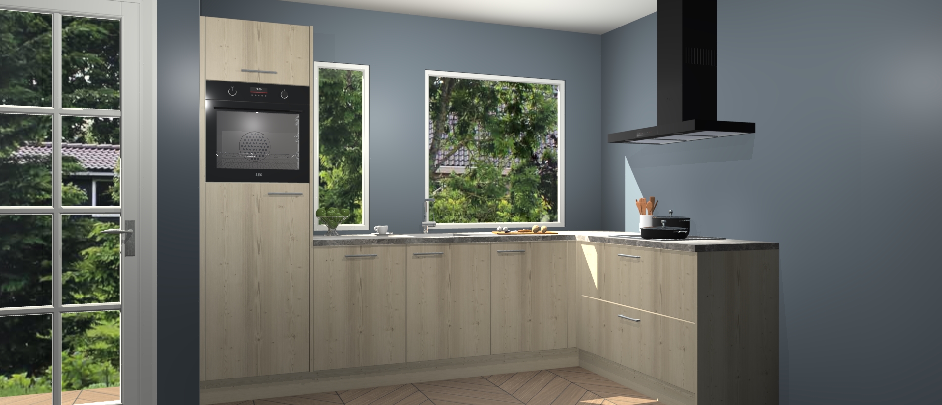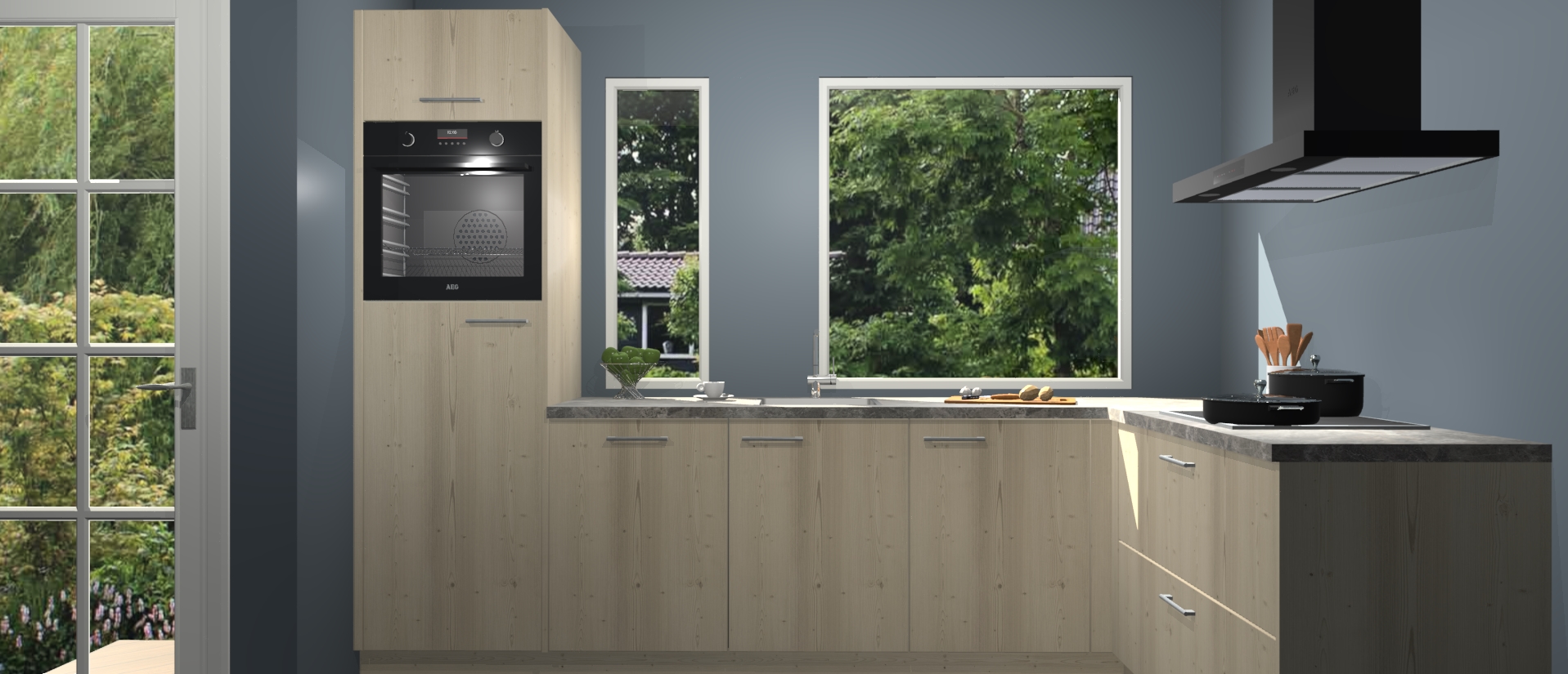 Deze complete keuken wordt geleverd met 5 inbouwapparaten: een oven, inductiekookplaat, afzuigkap, vaatwasser en koelkast. De toestellen kunnen na bestelling ook gemakkelijk worden opgewaardeerd naar AEG. Bovendien is elke deur in deze keuken voorzien van handige softclose technologie voor eenvoudig gebruik! Als een leuke toevoeging zit in deze keuken ook een carrousel, zo hoef je niet meer de hoek in duiken om iets te pakken.