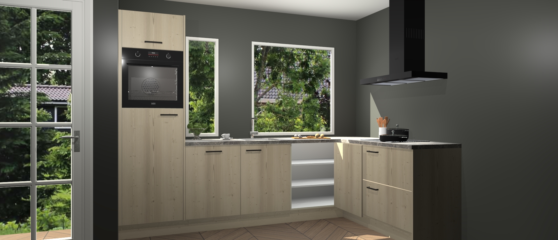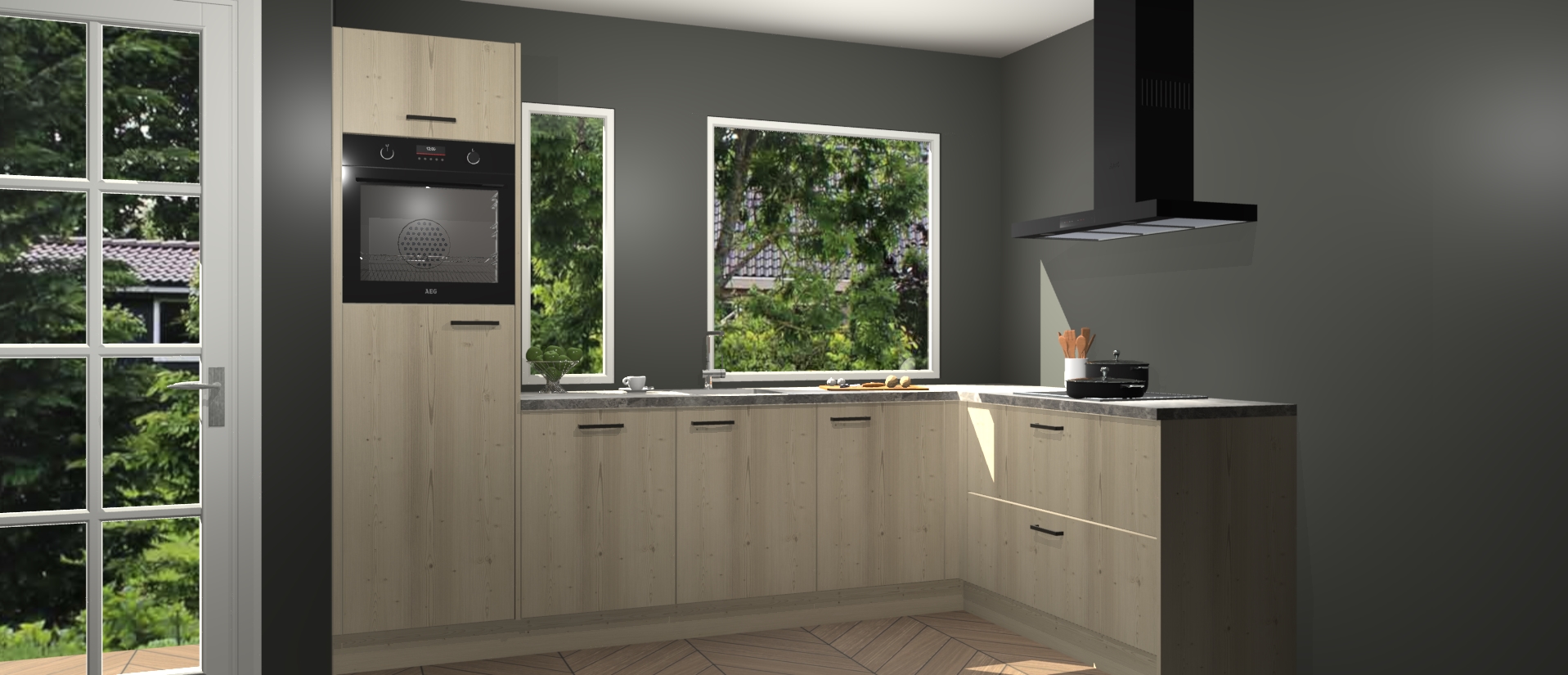 Deze complete keuken wordt geleverd met 5 inbouwapparaten: een oven, inductiekookplaat, afzuigkap, vaatwasser en koelkast. De toestellen kunnen na bestelling ook gemakkelijk worden opgewaardeerd naar AEG. Bovendien is elke deur in deze keuken voorzien van handige softclose technologie voor eenvoudig gebruik! Als een leuke toevoeging zit in deze keuken ook een carrousel, zo hoef je niet meer de hoek in duiken om iets te pakken.