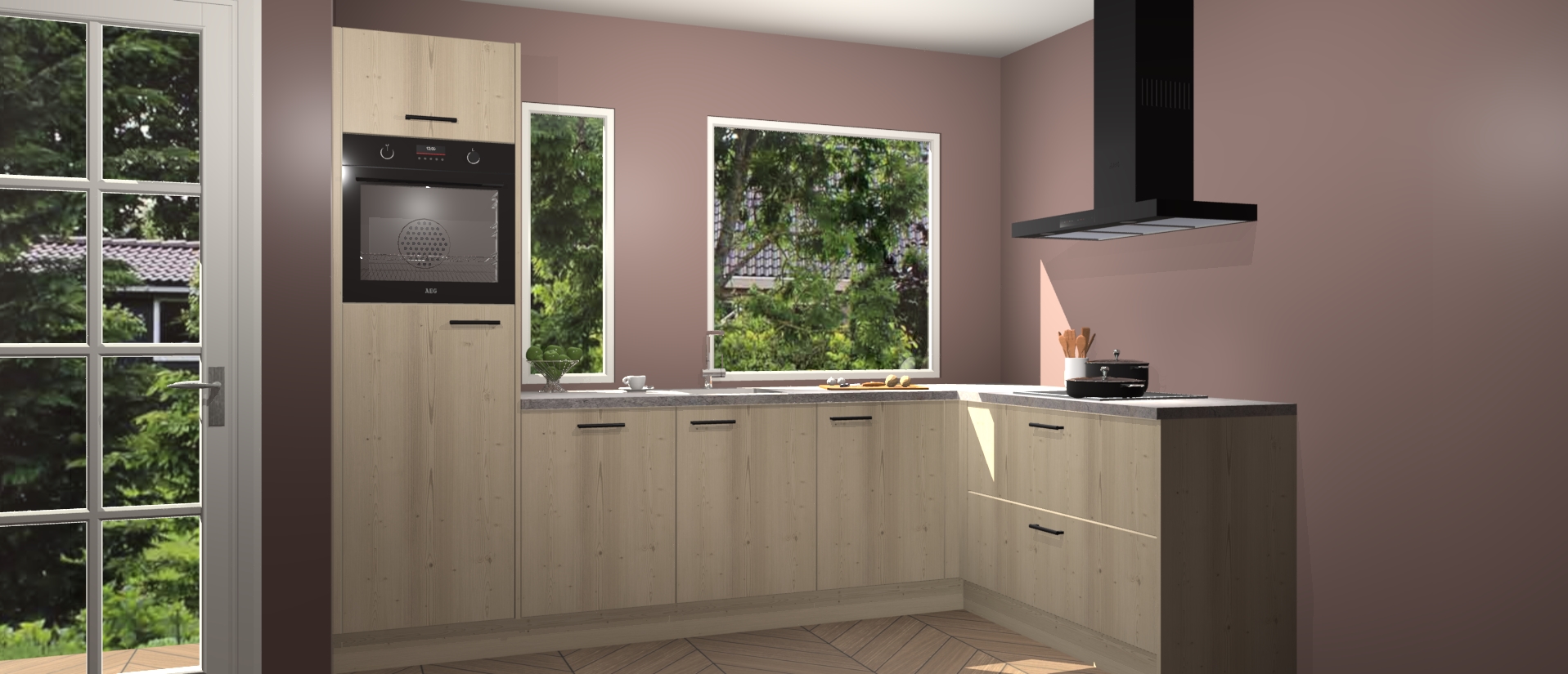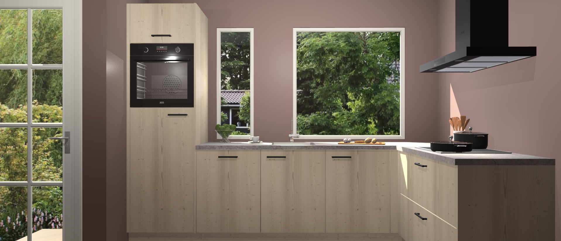 Deze complete keuken wordt geleverd met 5 inbouwapparaten: een oven, inductiekookplaat, afzuigkap, vaatwasser en koelkast. De toestellen kunnen na bestelling ook gemakkelijk worden opgewaardeerd naar AEG. Bovendien is elke deur in deze keuken voorzien van handige softclose technologie voor eenvoudig gebruik! Als een leuke toevoeging zit in deze keuken ook een carrousel, zo hoef je niet meer de hoek in duiken om iets te pakken.
