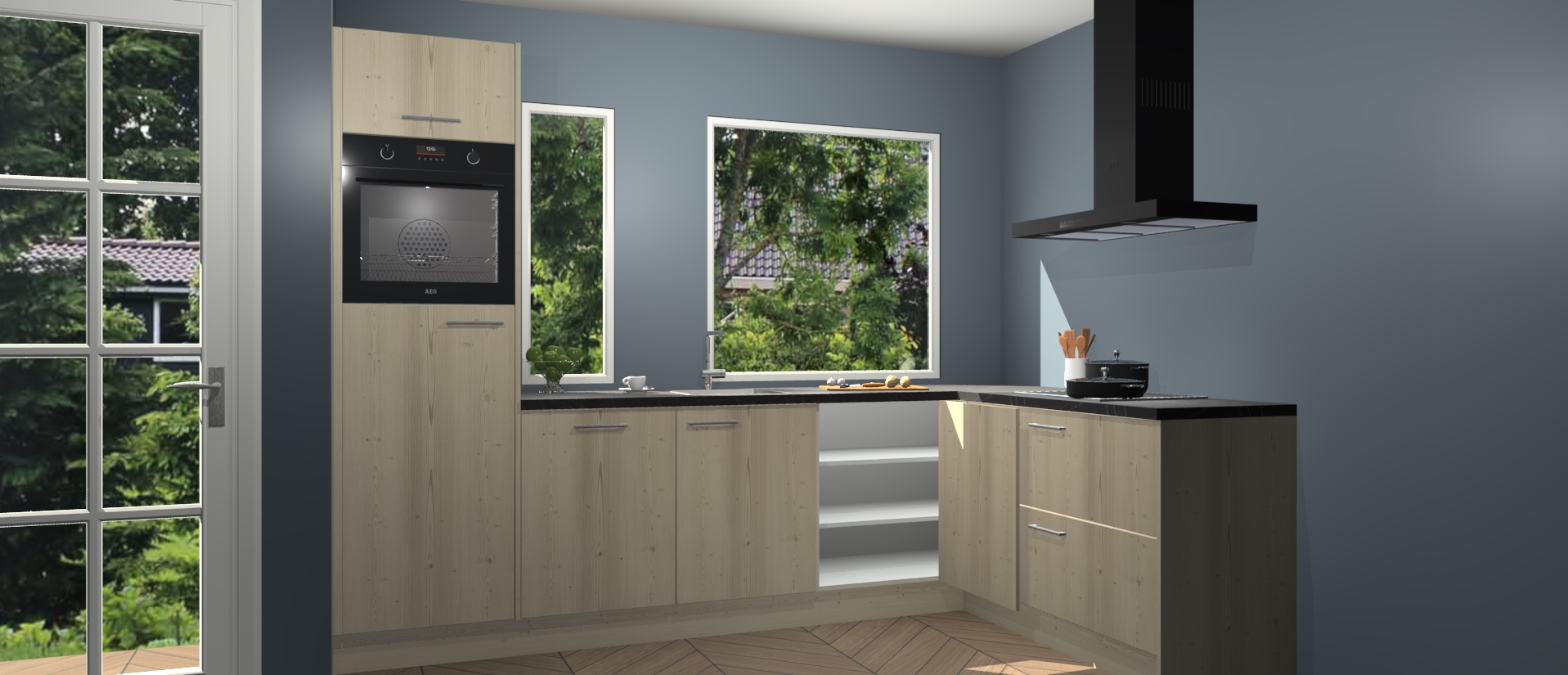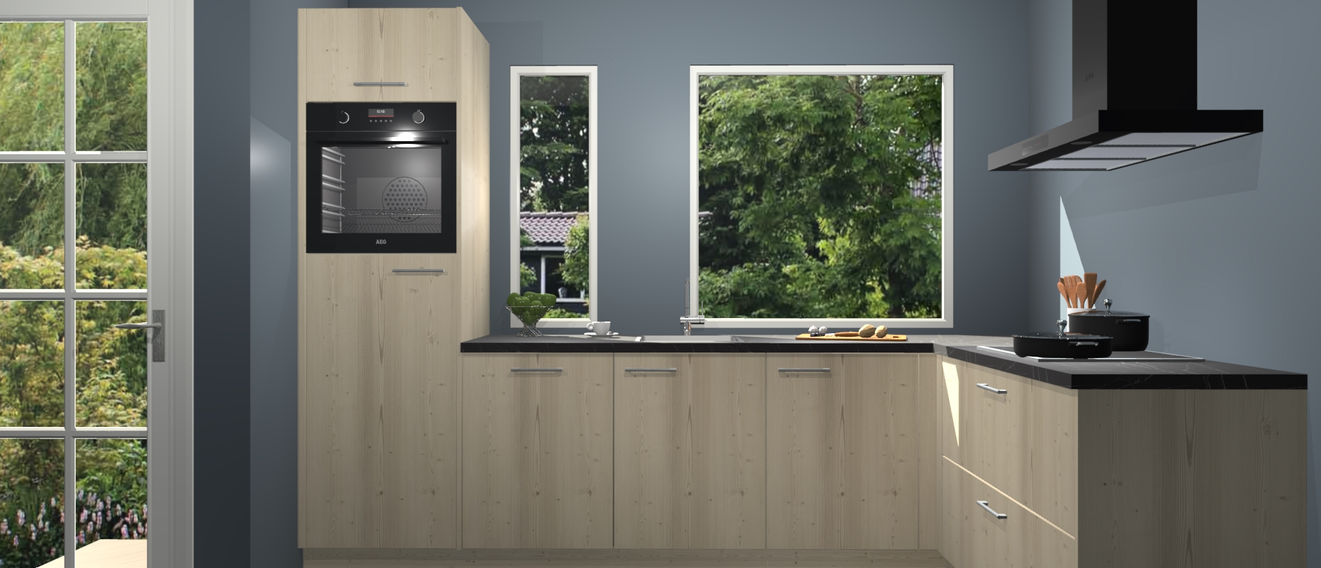 Deze complete keuken wordt geleverd met 5 inbouwapparaten: een oven, inductiekookplaat, afzuigkap, vaatwasser en koelkast. De toestellen kunnen na bestelling ook gemakkelijk worden opgewaardeerd naar AEG. Bovendien is elke deur in deze keuken voorzien van handige softclose technologie voor eenvoudig gebruik! Als een leuke toevoeging zit in deze keuken ook een carrousel, zo hoef je niet meer de hoek in duiken om iets te pakken.