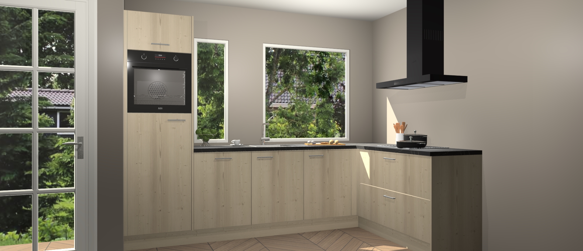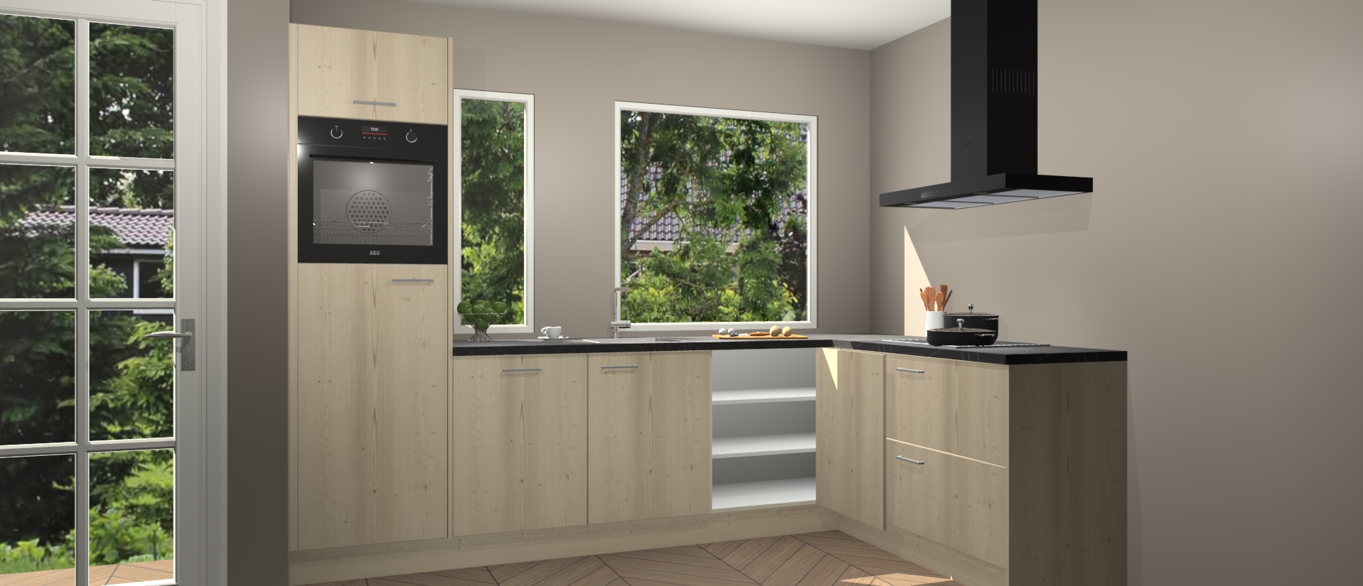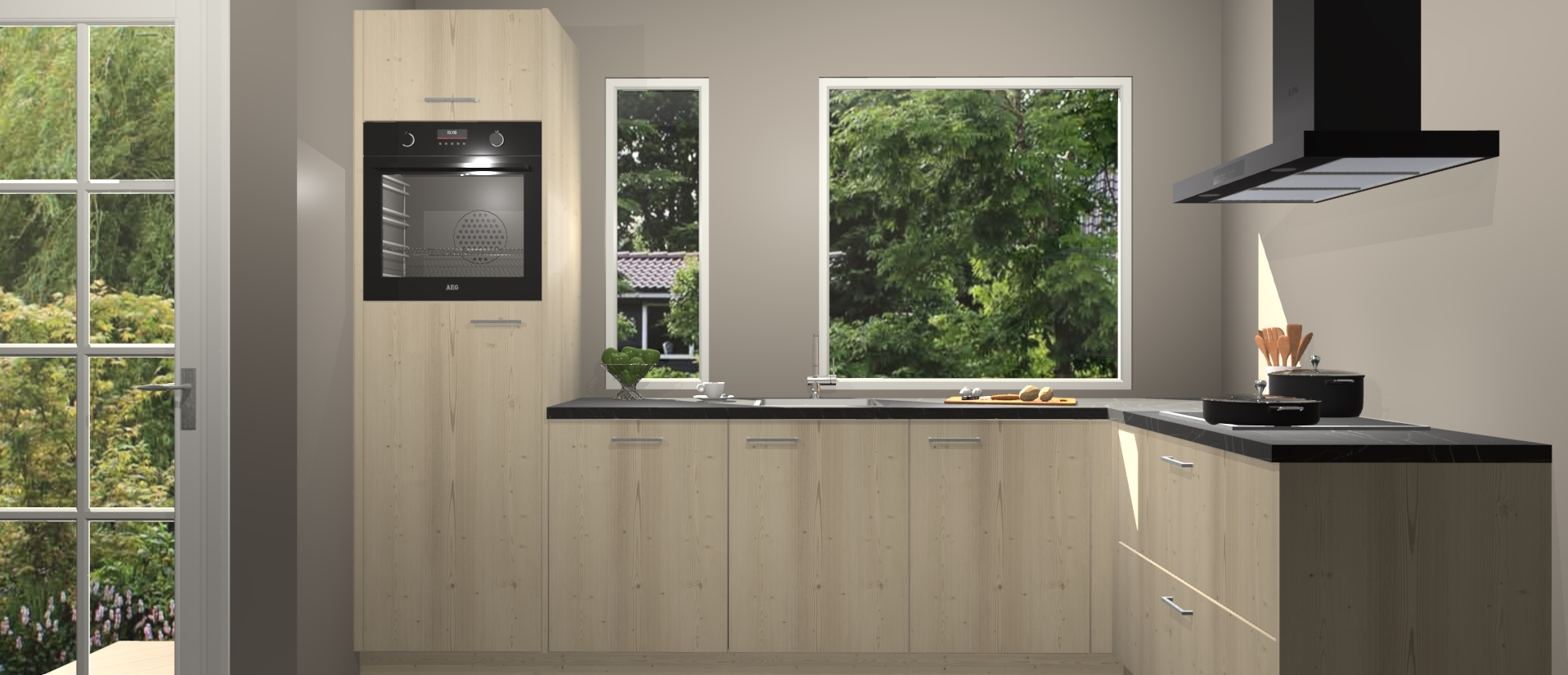Deze complete keuken wordt geleverd met 5 inbouwapparaten: een oven, inductiekookplaat, afzuigkap, vaatwasser en koelkast. De toestellen kunnen na bestelling ook gemakkelijk worden opgewaardeerd naar AEG. Bovendien is elke deur in deze keuken voorzien van handige softclose technologie voor eenvoudig gebruik! Als een leuke toevoeging zit in deze keuken ook een carrousel, zo hoef je niet meer de hoek in duiken om iets te pakken.