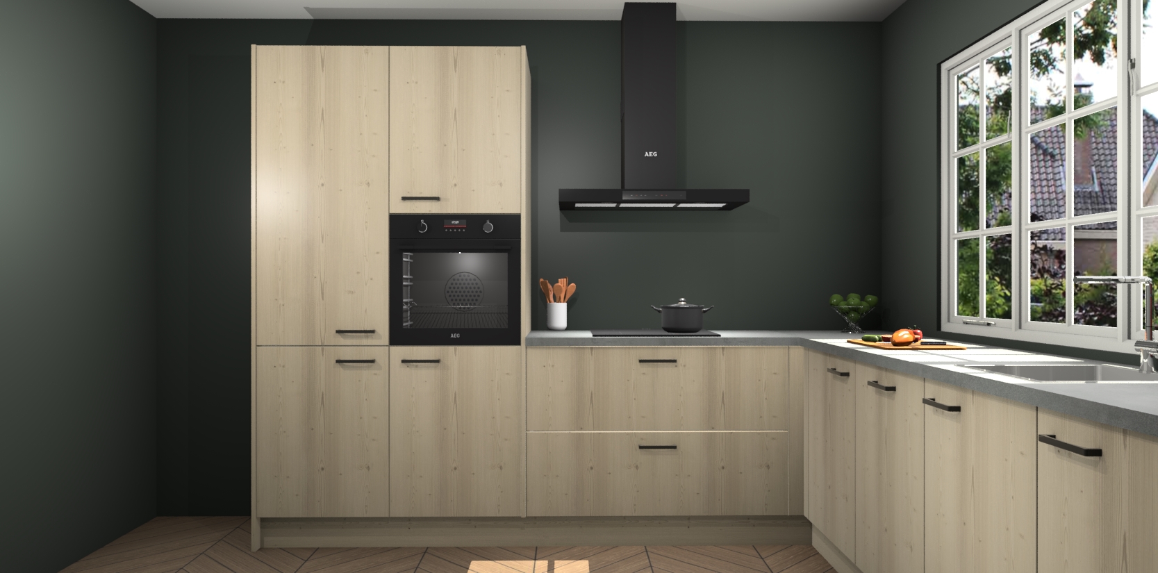 De keuken heeft veel opbergruimte, waardoor u alle ingrediënten gemakkelijk bereikbaar hebt staan. En daarnaast bevat deze volledig uitgeruste keuken ook 5 ingebouwde apparaten: een oven, inductiekookplaat, afzuigkap, vaatwasser en koelkast. Deze zijn heel eenvoudig na bestellen te upgraden naar AEG als u dit wilt. Bovendien zijn de softclose-kastdeuren ideaal; geef ze gewoon even een tikje en ze sluiten automatisch met geruisloze precisie.