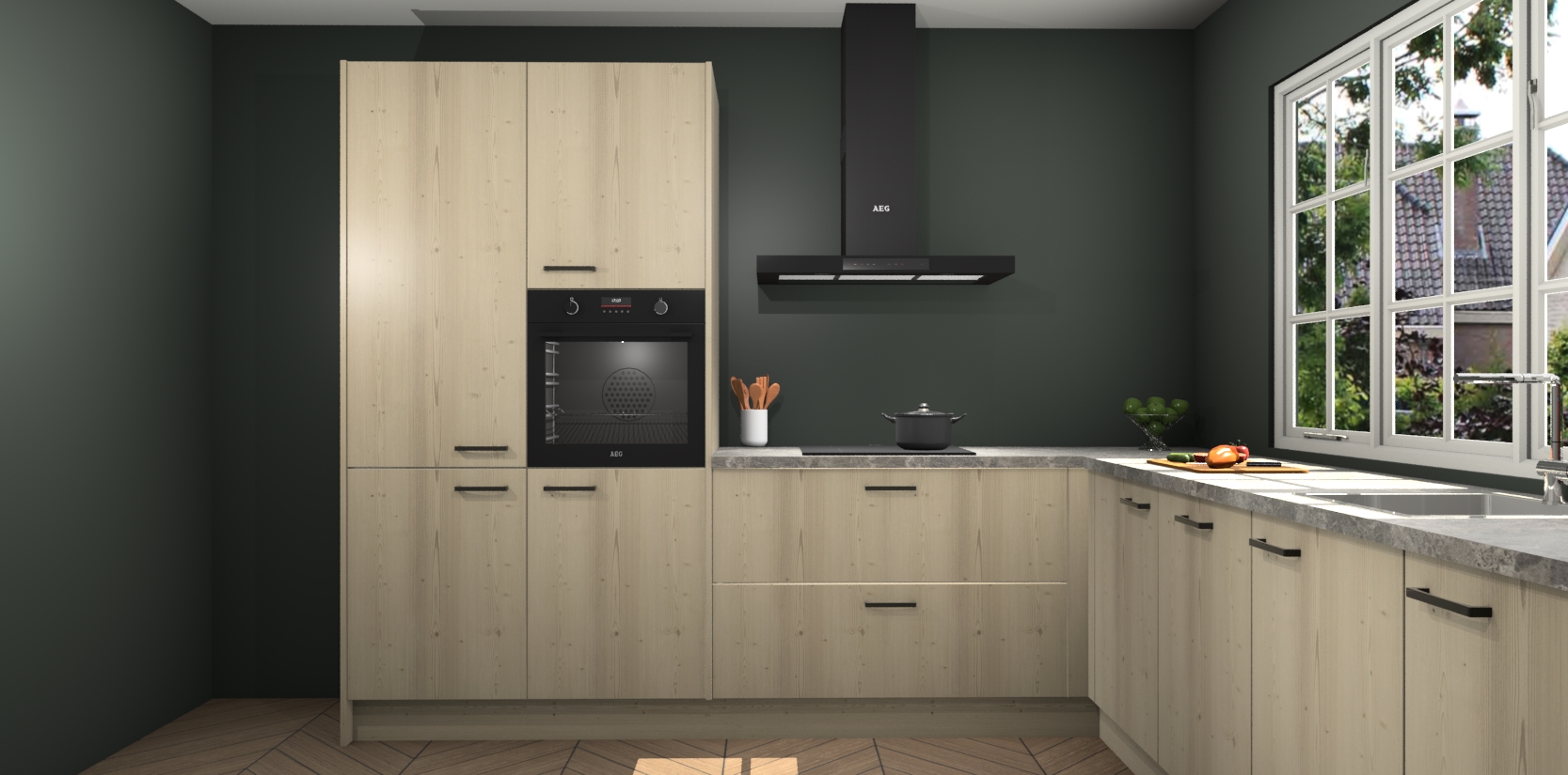 De keuken heeft veel opbergruimte, waardoor u alle ingrediënten gemakkelijk bereikbaar hebt staan. En daarnaast bevat deze volledig uitgeruste keuken ook 5 ingebouwde apparaten: een oven, inductiekookplaat, afzuigkap, vaatwasser en koelkast. Deze zijn heel eenvoudig na bestellen te upgraden naar AEG als u dit wilt. Bovendien zijn de softclose-kastdeuren ideaal; geef ze gewoon even een tikje en ze sluiten automatisch met geruisloze precisie.