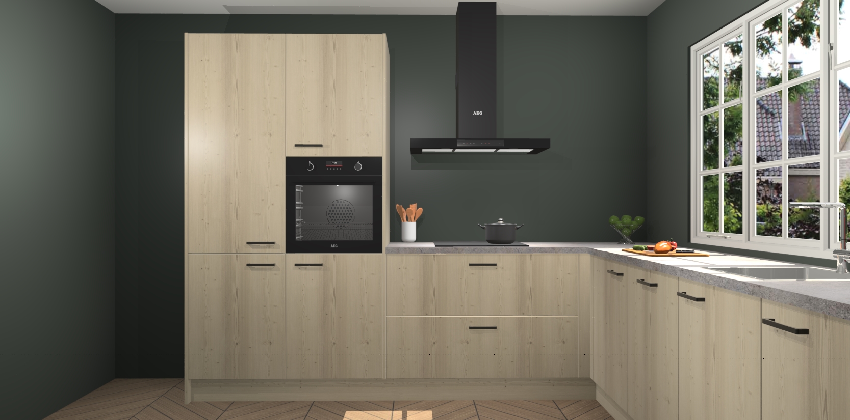 De keuken heeft veel opbergruimte, waardoor u alle ingrediënten gemakkelijk bereikbaar hebt staan. En daarnaast bevat deze volledig uitgeruste keuken ook 5 ingebouwde apparaten: een oven, inductiekookplaat, afzuigkap, vaatwasser en koelkast. Deze zijn heel eenvoudig na bestellen te upgraden naar AEG als u dit wilt. Bovendien zijn de softclose-kastdeuren ideaal; geef ze gewoon even een tikje en ze sluiten automatisch met geruisloze precisie.