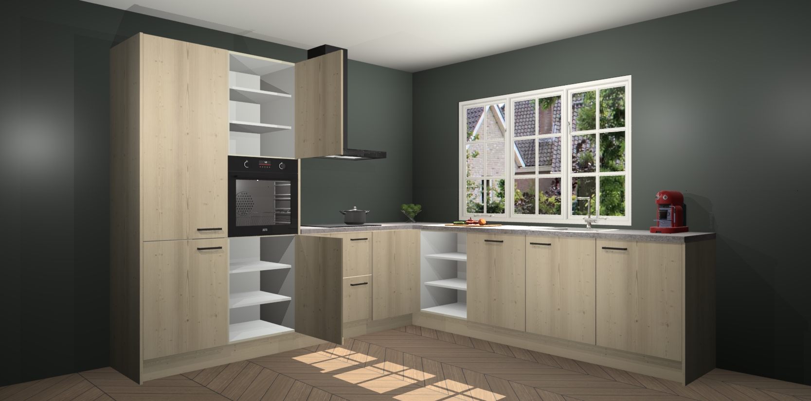 Welkom in de nieuwe wereld van een moderne keuken: de Vuren keuken Casablanca! Met dit innovatieve keukendesign haalt u de natuur naar binnen. Neem plaats aan uw hout-look keuken en voel u verbonden met de prachtige Vuren kleur. Zeer gebruiksvriendelijk, ervaring door prettige materialen en kleur die perfect aansluiten bij uw sfeerkeuze in huis.