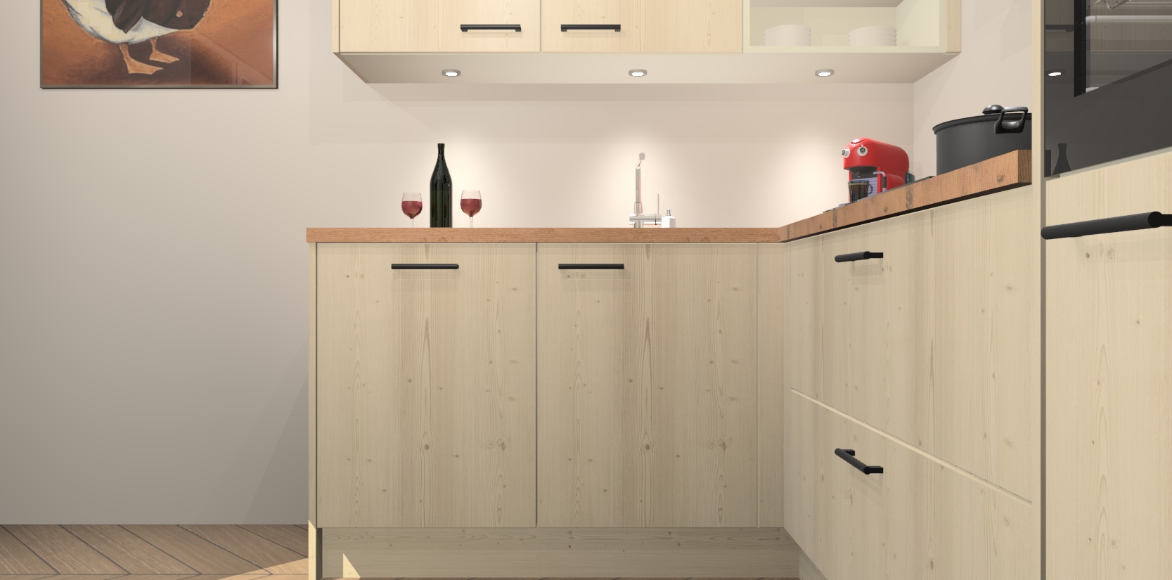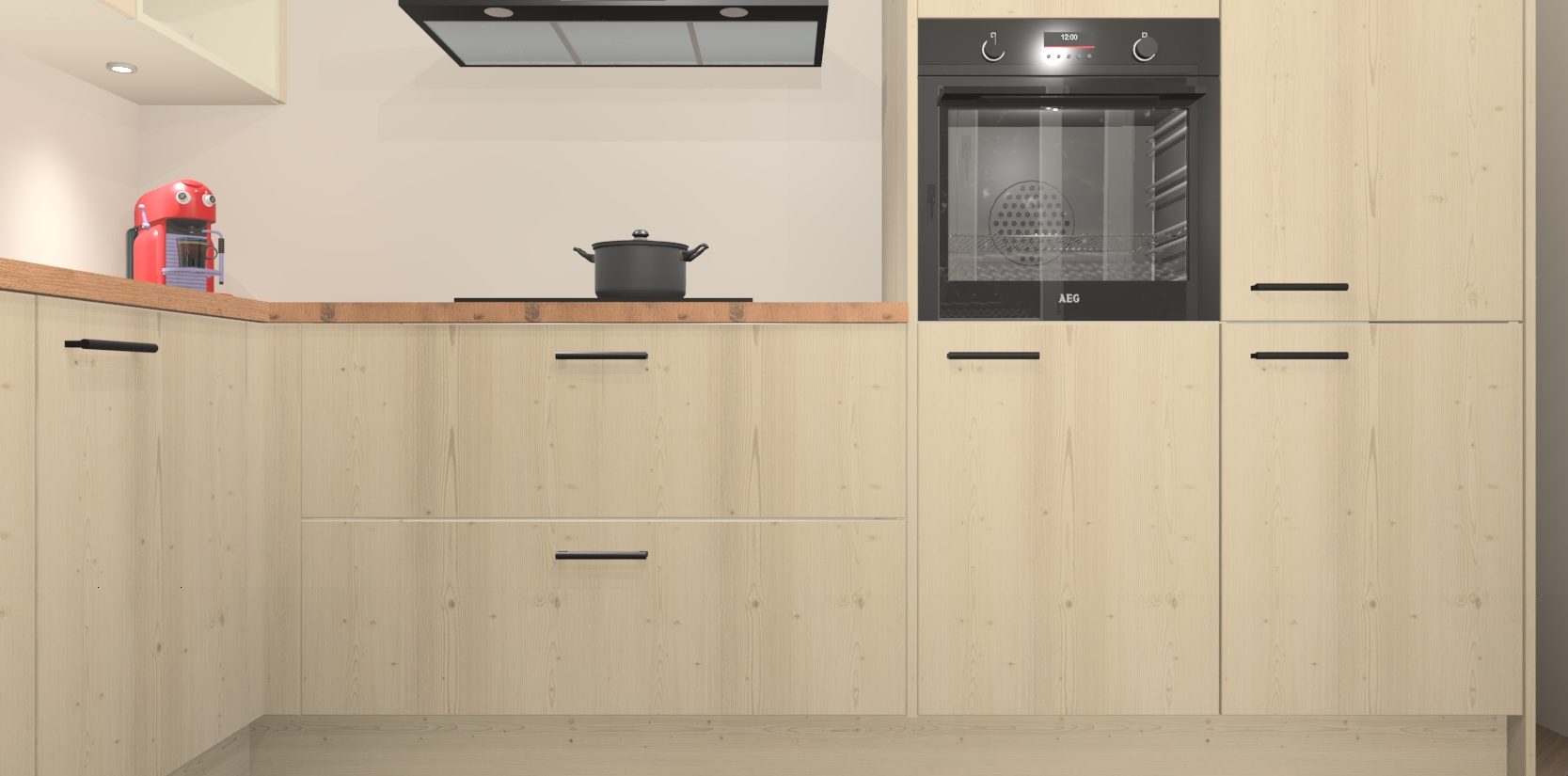 Inclusief plinten, stelpoten en werkblad
