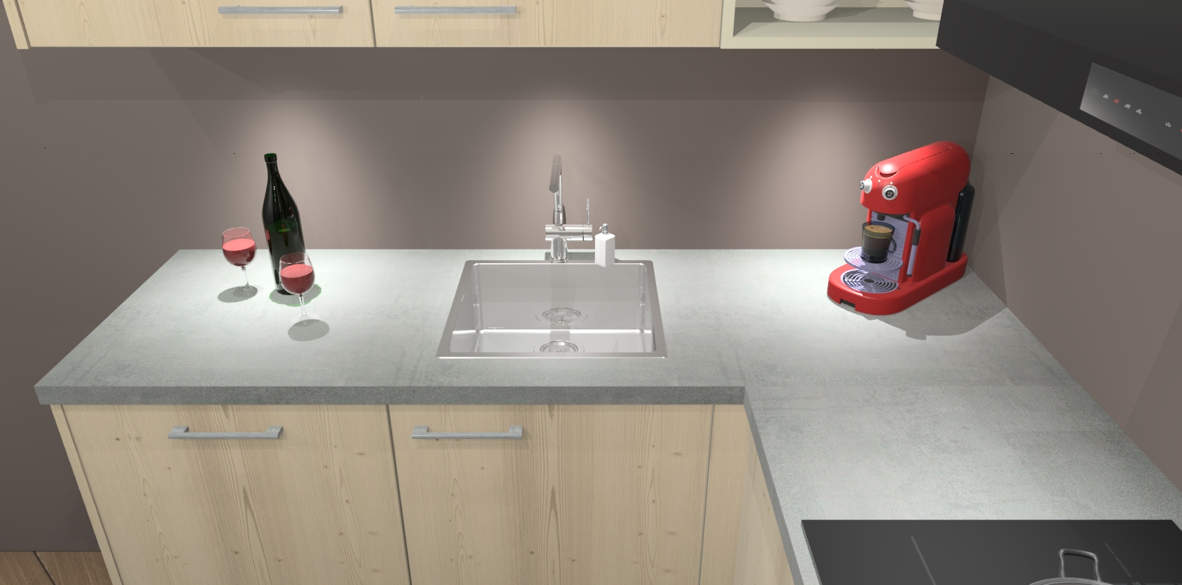 - Bij een hoekwerkblad zijn de hoeken in gevreesd en op maat gemaakt
