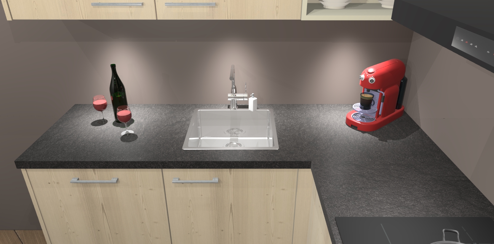 - Bij een hoekwerkblad zijn de hoeken in gevreesd en op maat gemaakt