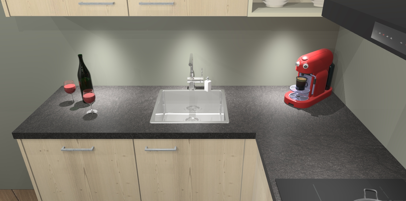 - Bij een hoekwerkblad zijn de hoeken in gevreesd en op maat gemaakt