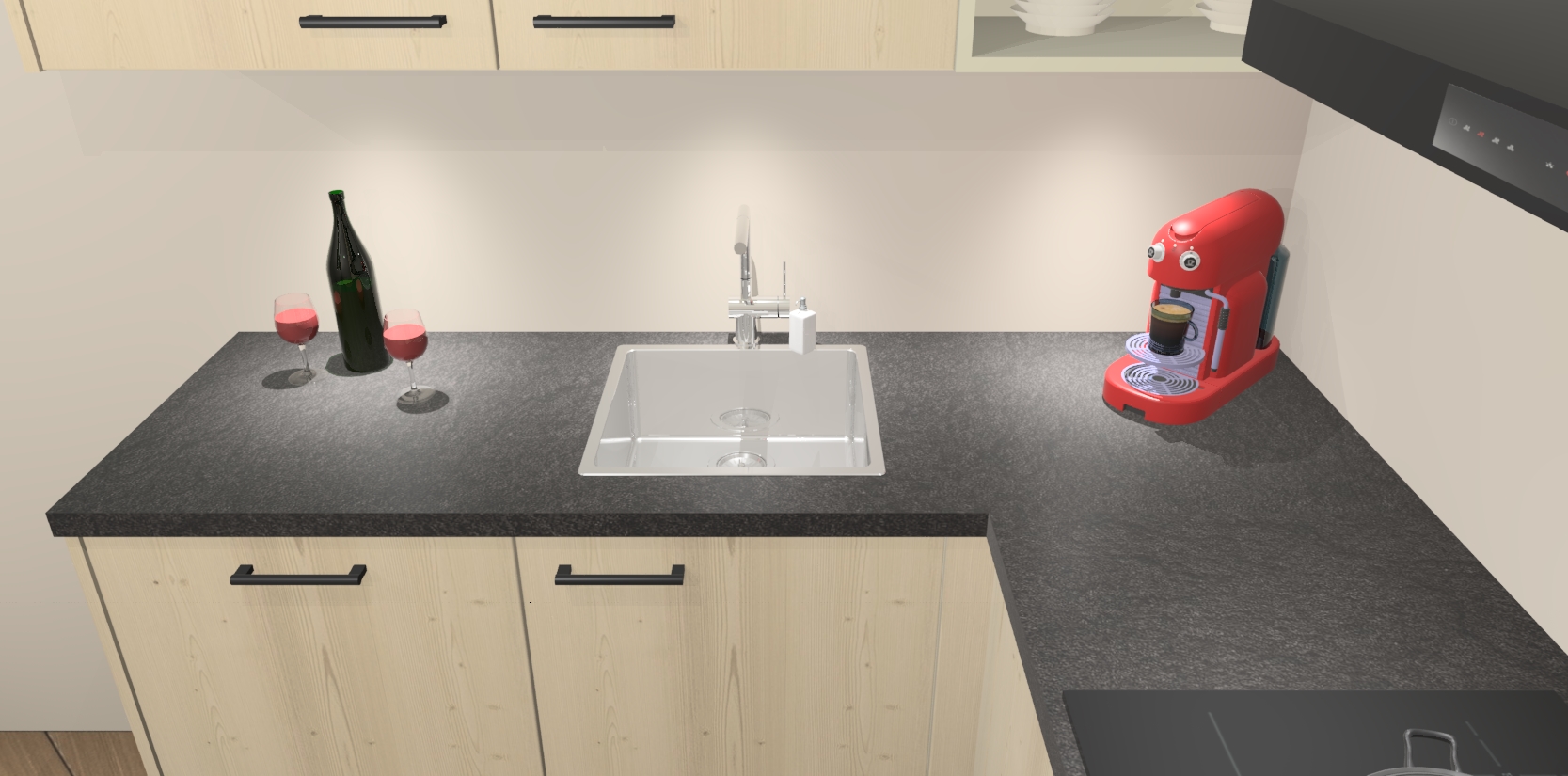 - Bij een hoekwerkblad zijn de hoeken in gevreesd en op maat gemaakt