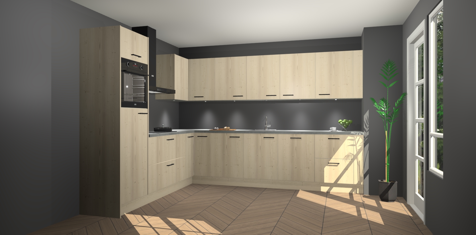 De Vuren keuken Debar is uitgerust met vijf inbouwapparaten die elke kooktaak handig en efficiënt maken. Een oven, inductiekookplaat, afzuigkap, vaatwasser en koelkast zijn standaard, maar kunnen na bestelling eenvoudig worden geupgrade naar AEG. Profiteer vervolgens van de softclose deuren voor snelle toegang en geruisloze toegang.