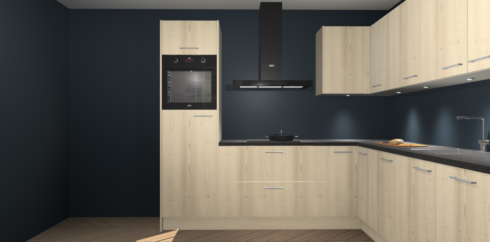 De Vuren keuken Debar is uitgerust met vijf inbouwapparaten die elke kooktaak handig en efficiënt maken. Een oven, inductiekookplaat, afzuigkap, vaatwasser en koelkast zijn standaard, maar kunnen na bestelling eenvoudig worden geupgrade naar AEG. Profiteer vervolgens van de softclose deuren voor snelle toegang en geruisloze toegang.