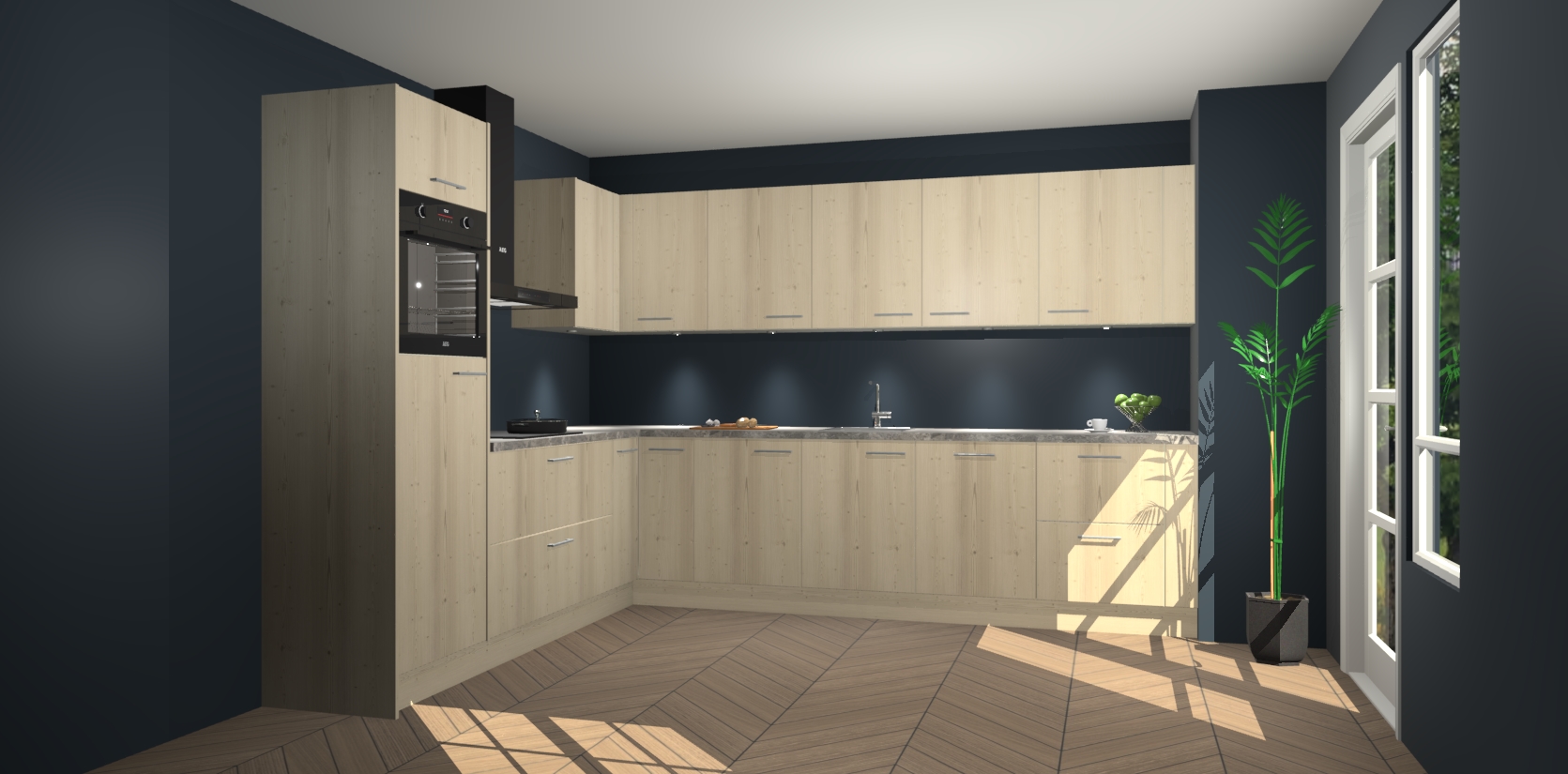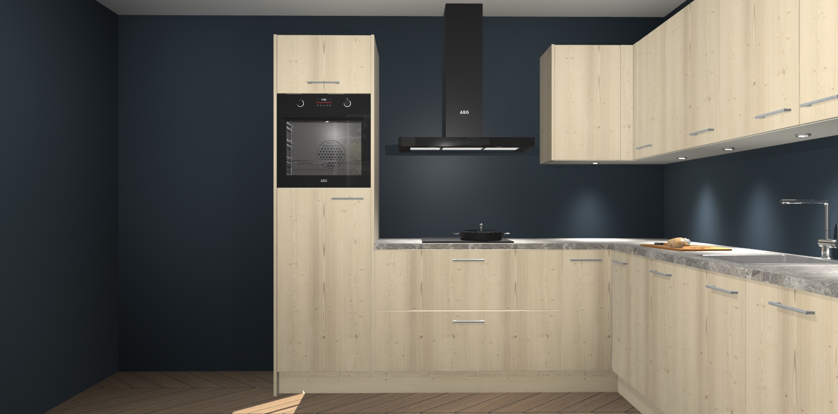 De Vuren keuken Debar is uitgerust met vijf inbouwapparaten die elke kooktaak handig en efficiënt maken. Een oven, inductiekookplaat, afzuigkap, vaatwasser en koelkast zijn standaard, maar kunnen na bestelling eenvoudig worden geupgrade naar AEG. Profiteer vervolgens van de softclose deuren voor snelle toegang en geruisloze toegang.