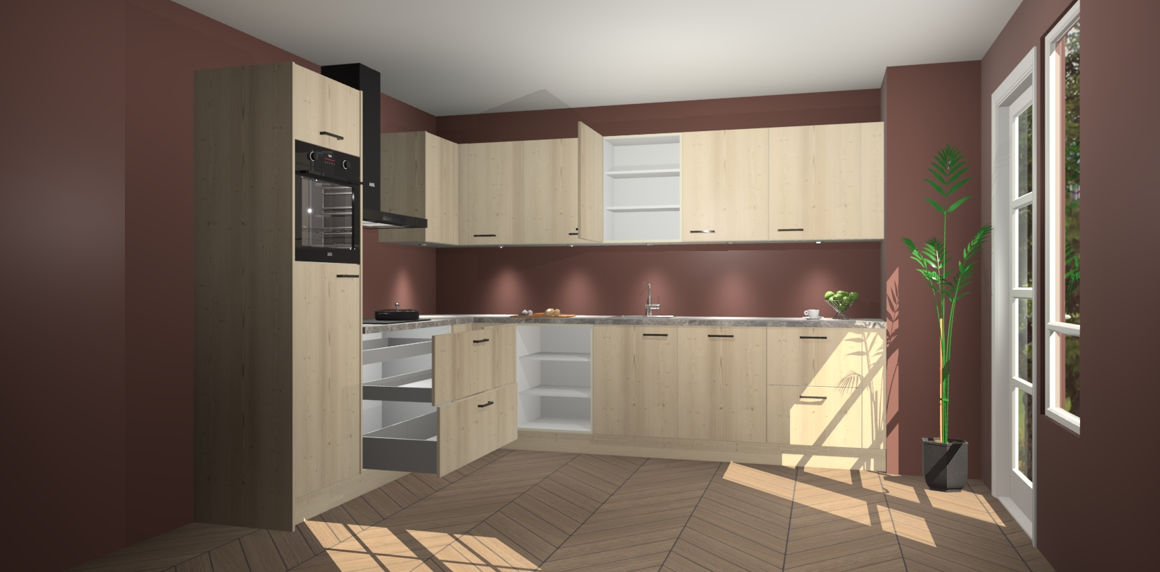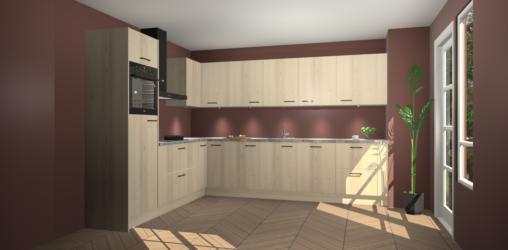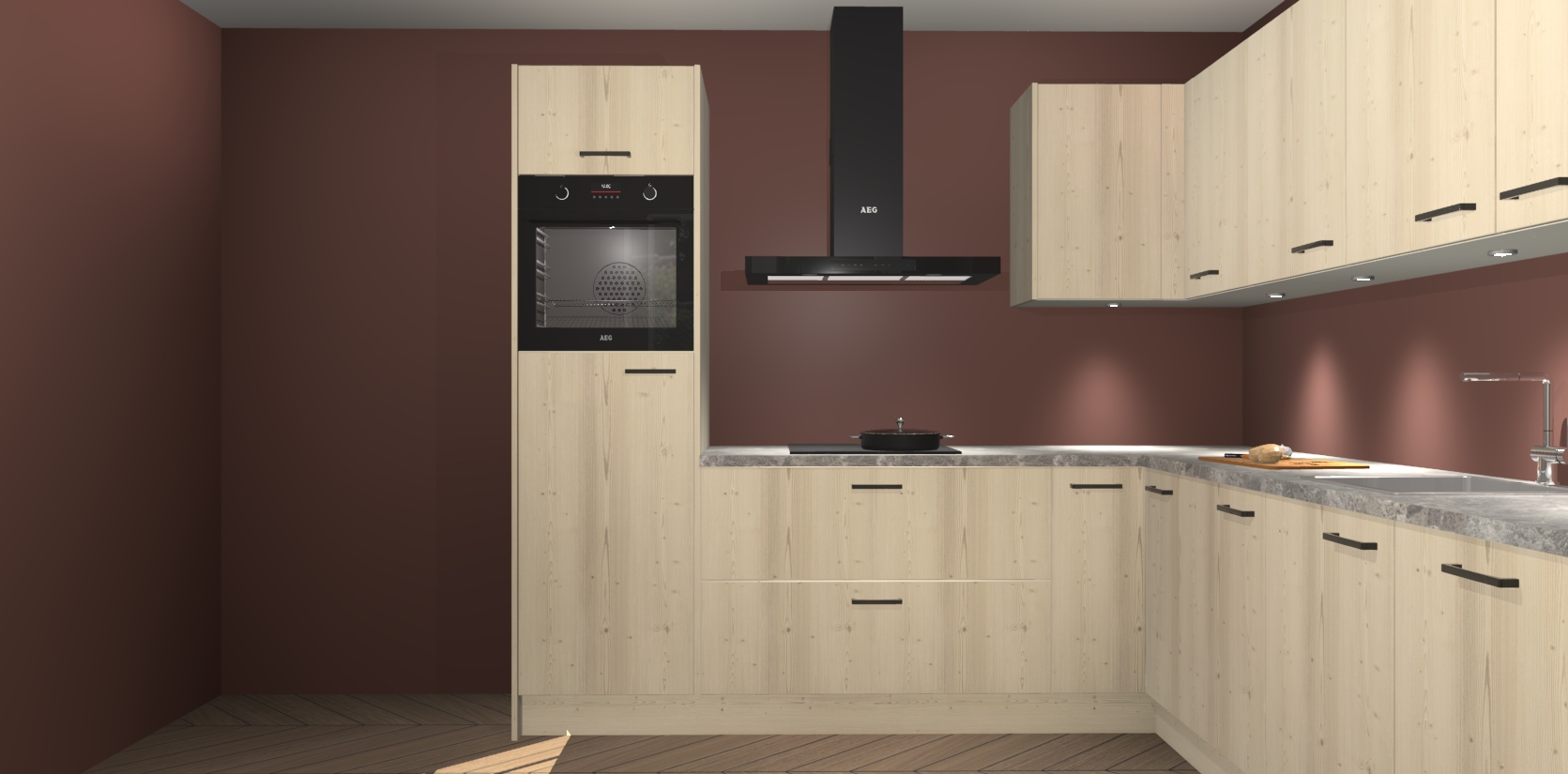 De Vuren keuken Debar is uitgerust met vijf inbouwapparaten die elke kooktaak handig en efficiënt maken. Een oven, inductiekookplaat, afzuigkap, vaatwasser en koelkast zijn standaard, maar kunnen na bestelling eenvoudig worden geupgrade naar AEG. Profiteer vervolgens van de softclose deuren voor snelle toegang en geruisloze toegang.