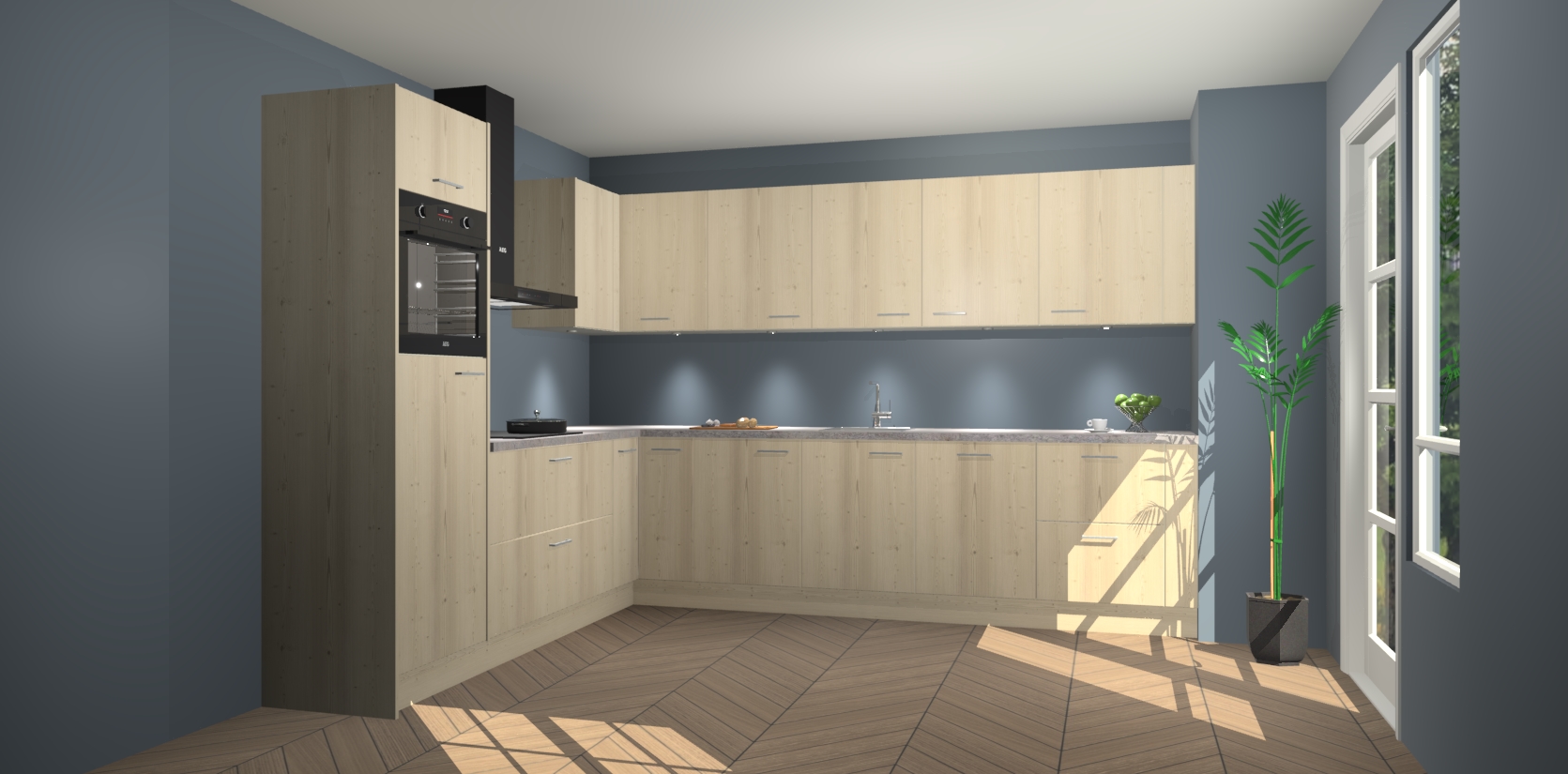 De Vuren keuken Debar is uitgerust met vijf inbouwapparaten die elke kooktaak handig en efficiënt maken. Een oven, inductiekookplaat, afzuigkap, vaatwasser en koelkast zijn standaard, maar kunnen na bestelling eenvoudig worden geupgrade naar AEG. Profiteer vervolgens van de softclose deuren voor snelle toegang en geruisloze toegang.