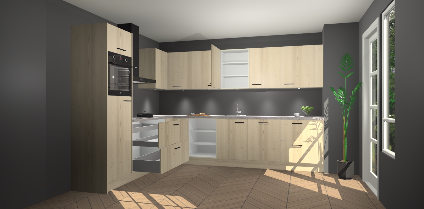 Als u op zoek bent naar de perfecte keuken om uw huis mee op te fleuren, zoek dan niet verder dan de Vuren keuken Debar. Deze prachtige hoekkeuken straalt warmte en luxe uit met een modern maar geraffineerd design. Maak u nooit meer zorgen of u wel genoeg opbergruimte heeft; dit meubel biedt voldoende opbergruimte om al uw keukenbenodigdheden binnen handbereik te houden.