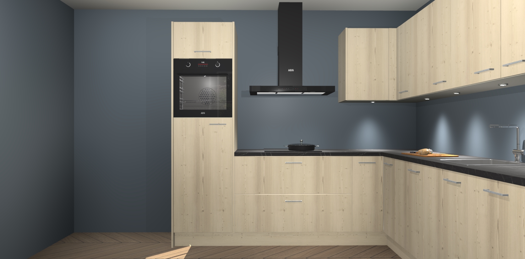 De Vuren keuken Debar is uitgerust met vijf inbouwapparaten die elke kooktaak handig en efficiënt maken. Een oven, inductiekookplaat, afzuigkap, vaatwasser en koelkast zijn standaard, maar kunnen na bestelling eenvoudig worden geupgrade naar AEG. Profiteer vervolgens van de softclose deuren voor snelle toegang en geruisloze toegang.