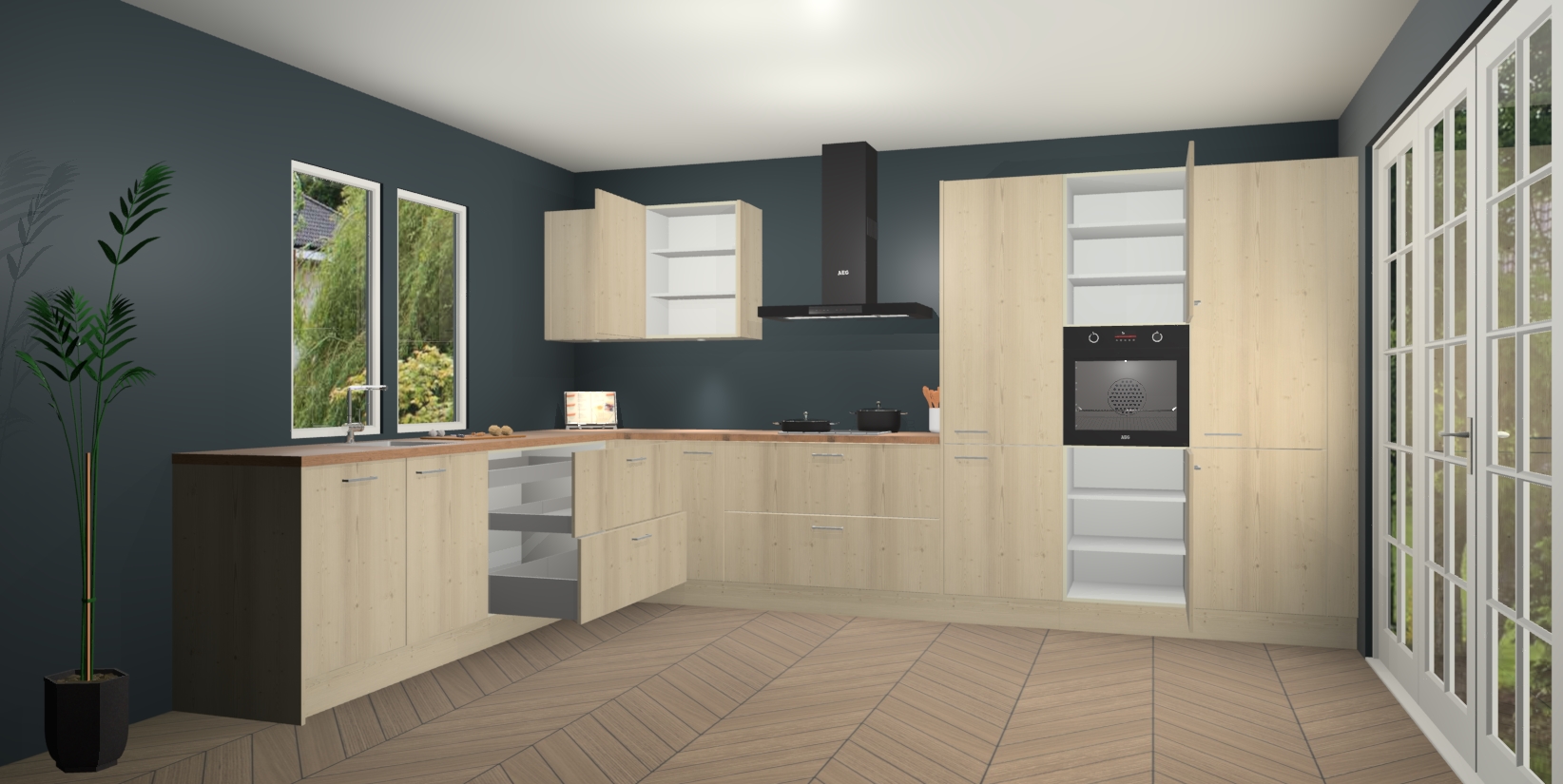 Inclusief plinten, stelpoten en werkblad