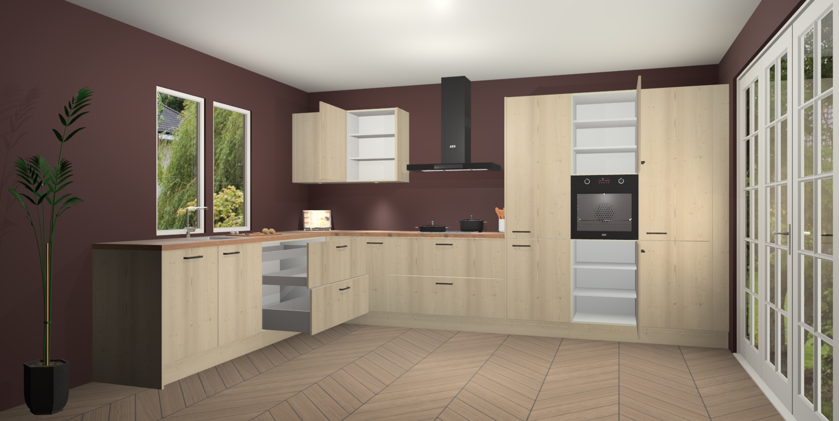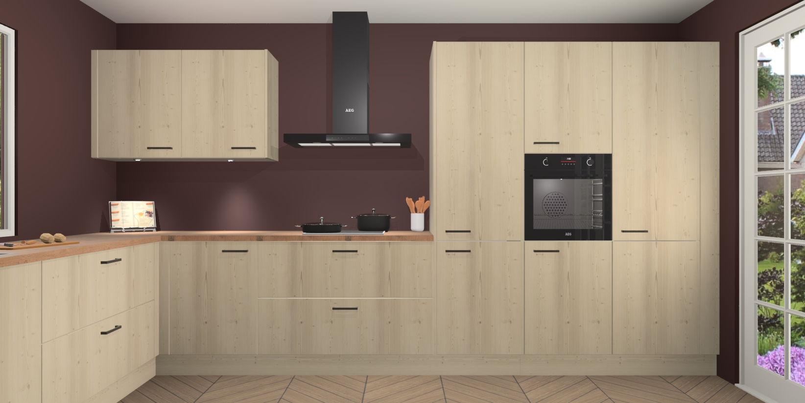 Kom dichtbij de perfecte keuken van uw dromen met de Vuren keuken Debrecen. Met een prachtige houtlook en eigentijds ontwerp, straalt deze keuken warmte en sfeer uit. Of u nu liefhebber bent van traditionele of moderne stijlen, er is genoeg ruimte om aan al uw behoeften te voldoen.