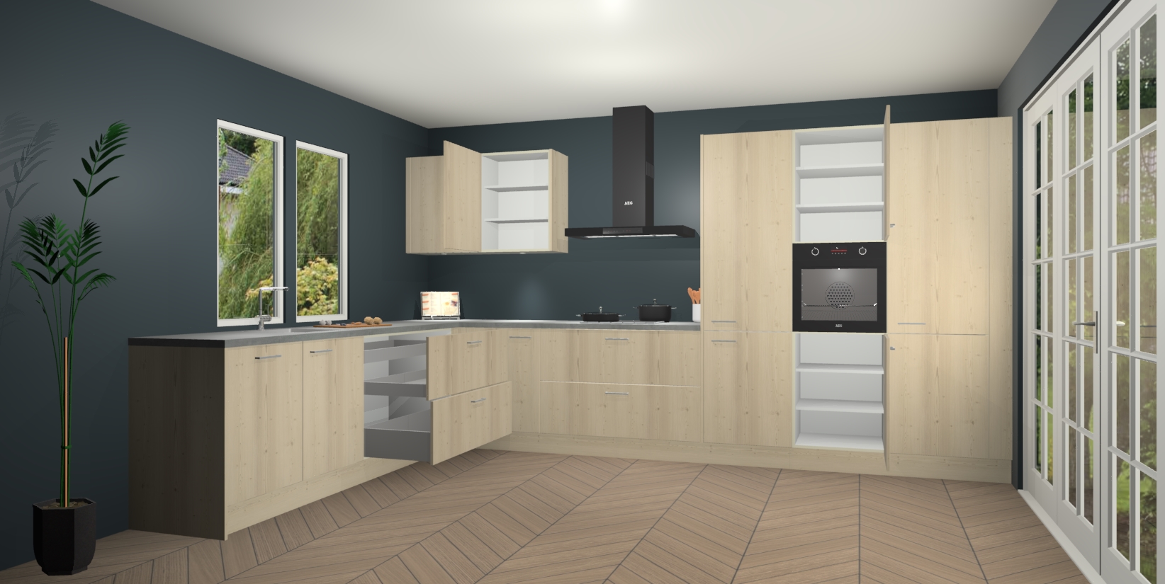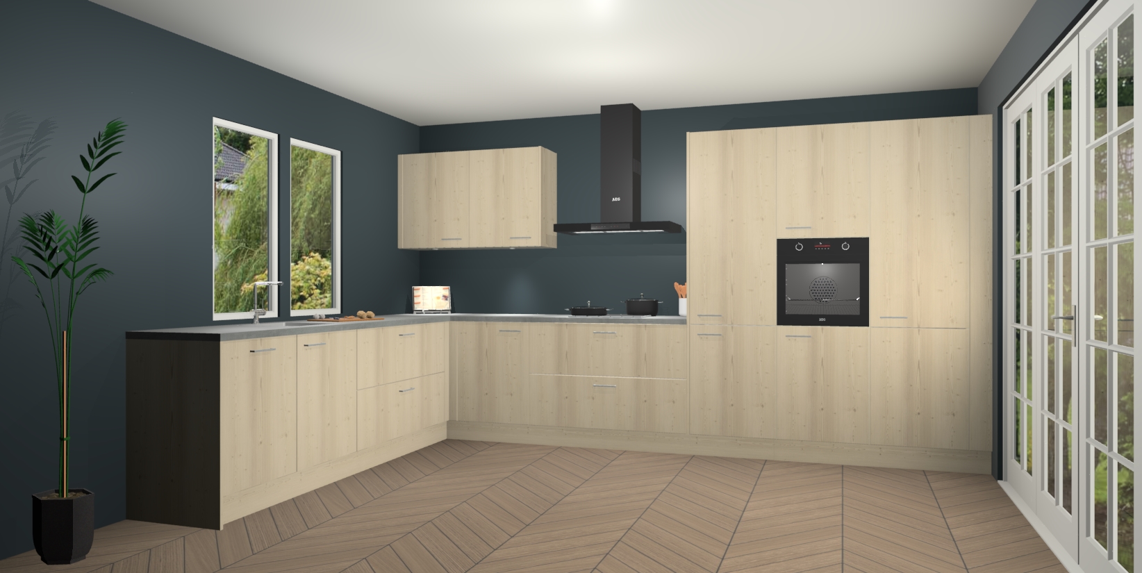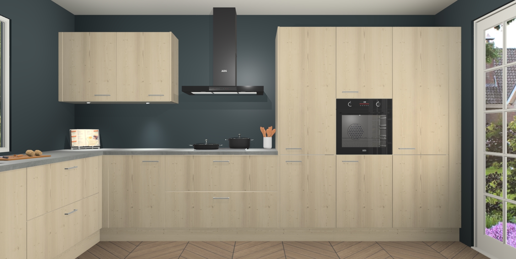 Kom dichtbij de perfecte keuken van uw dromen met de Vuren keuken Debrecen. Met een prachtige houtlook en eigentijds ontwerp, straalt deze keuken warmte en sfeer uit. Of u nu liefhebber bent van traditionele of moderne stijlen, er is genoeg ruimte om aan al uw behoeften te voldoen.