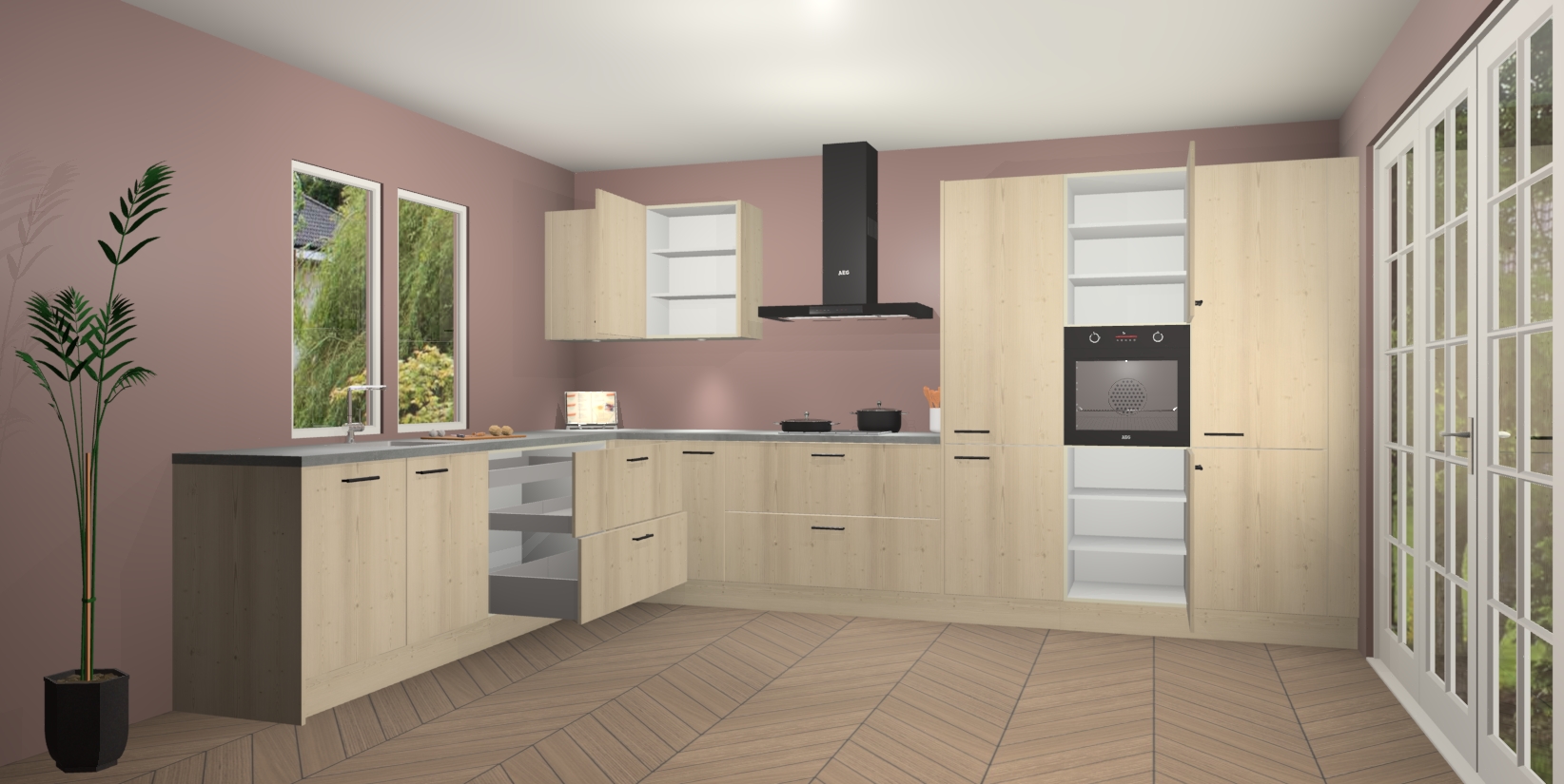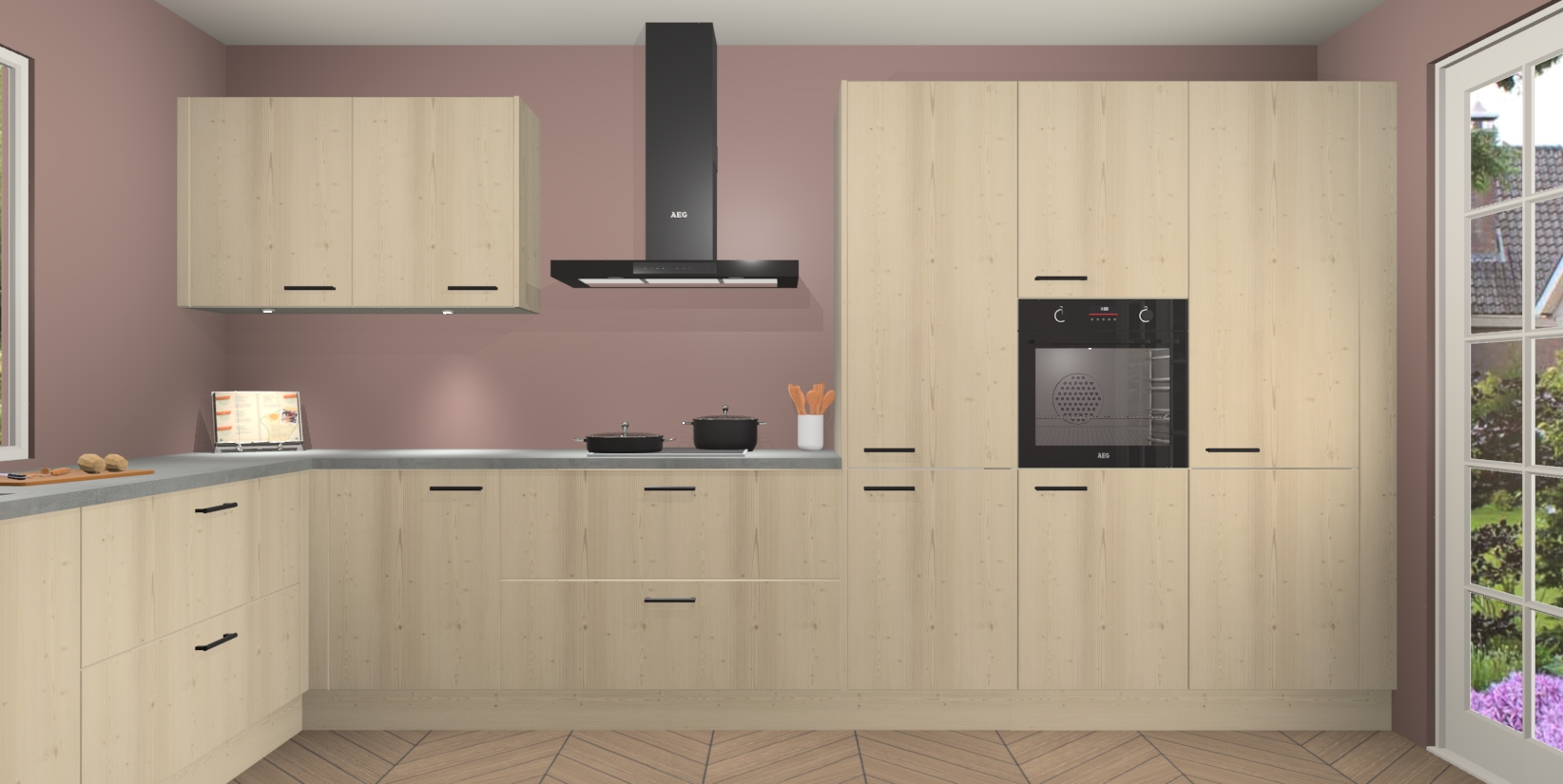 Kom dichtbij de perfecte keuken van uw dromen met de Vuren keuken Debrecen. Met een prachtige houtlook en eigentijds ontwerp, straalt deze keuken warmte en sfeer uit. Of u nu liefhebber bent van traditionele of moderne stijlen, er is genoeg ruimte om aan al uw behoeften te voldoen.