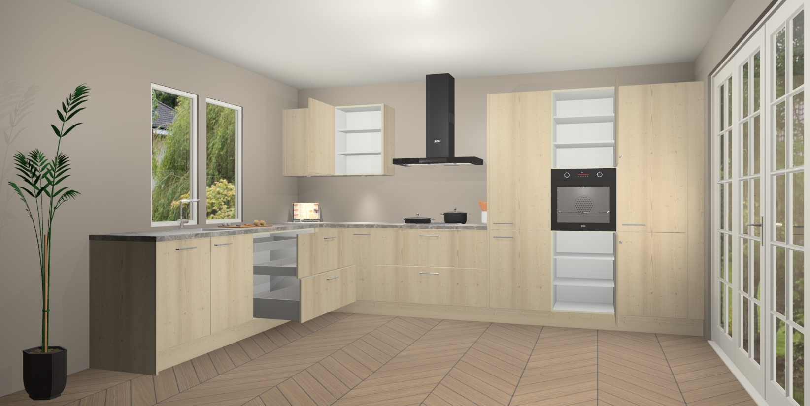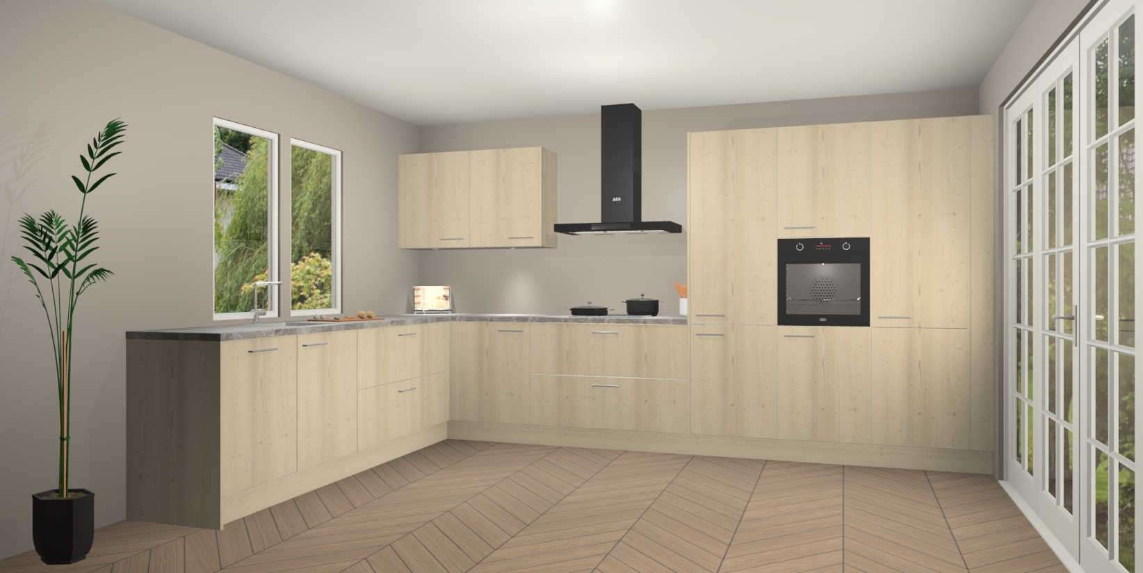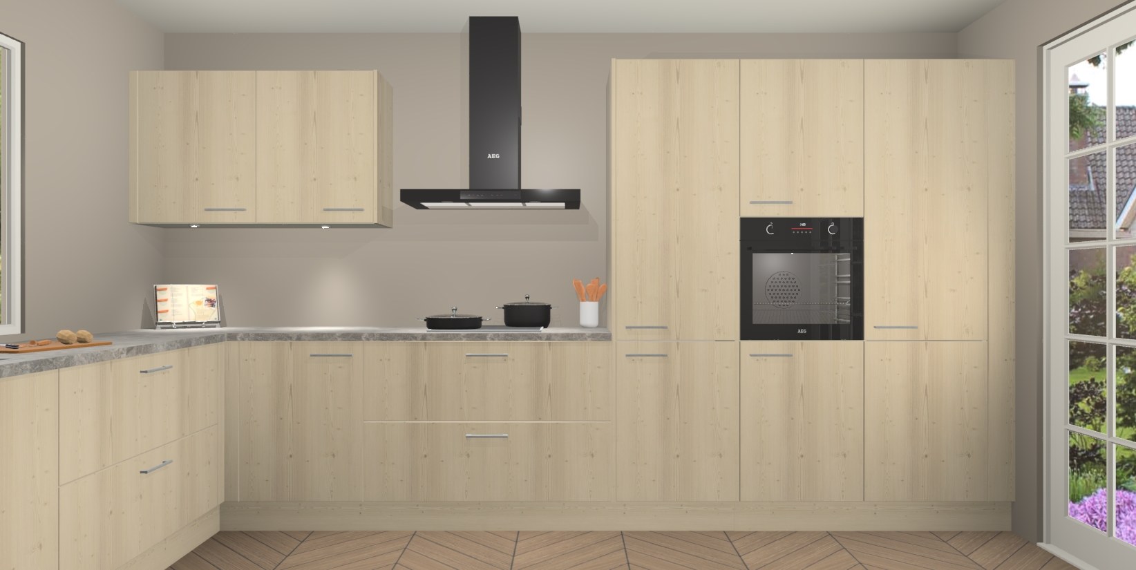 Kom dichtbij de perfecte keuken van uw dromen met de Vuren keuken Debrecen. Met een prachtige houtlook en eigentijds ontwerp, straalt deze keuken warmte en sfeer uit. Of u nu liefhebber bent van traditionele of moderne stijlen, er is genoeg ruimte om aan al uw behoeften te voldoen.
