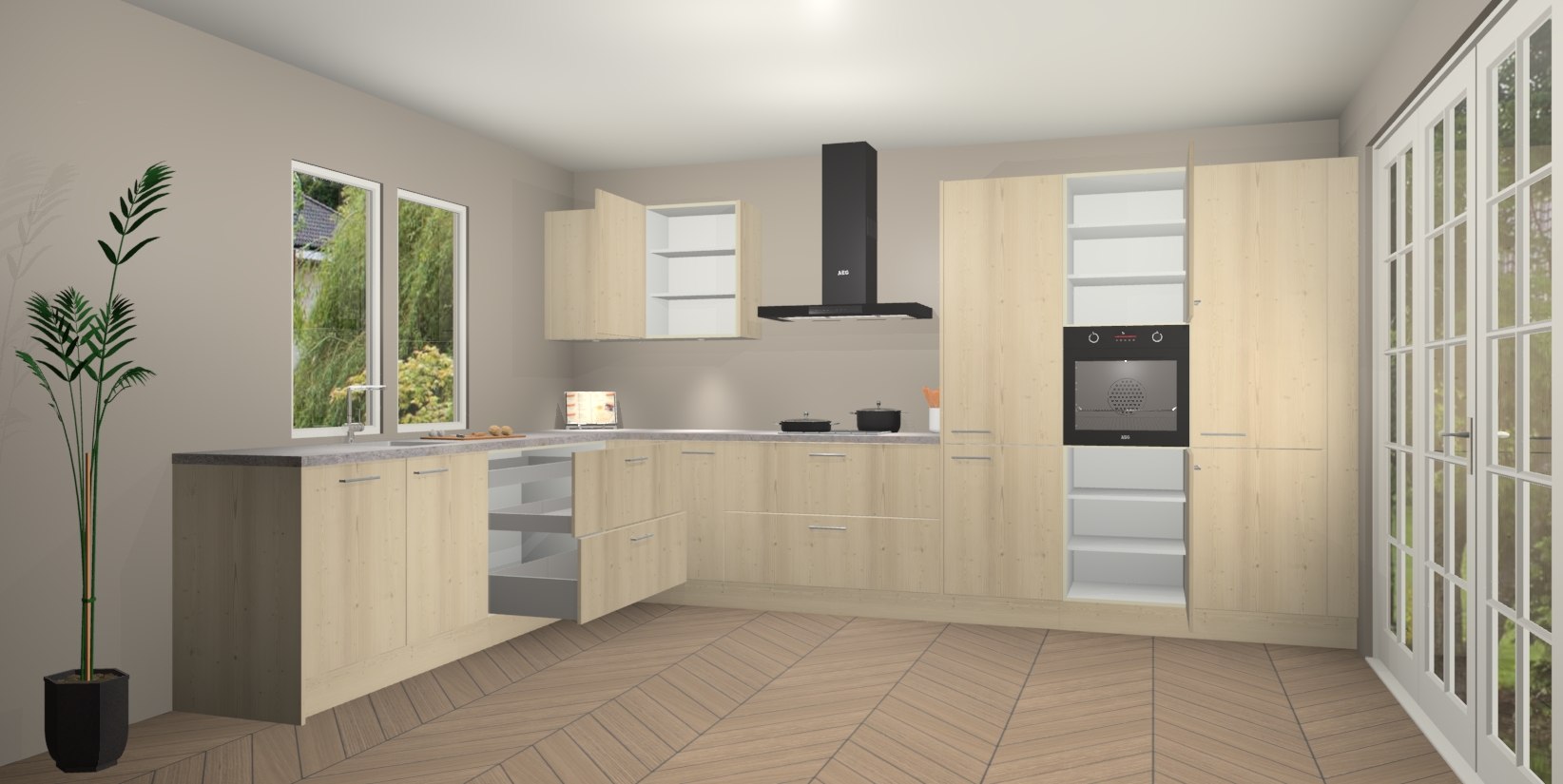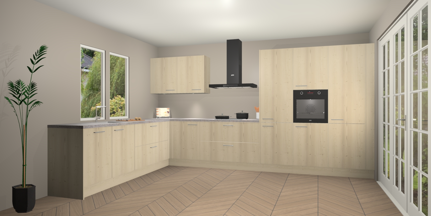 Kom dichtbij de perfecte keuken van uw dromen met de Vuren keuken Debrecen. Met een prachtige houtlook en eigentijds ontwerp, straalt deze keuken warmte en sfeer uit. Of u nu liefhebber bent van traditionele of moderne stijlen, er is genoeg ruimte om aan al uw behoeften te voldoen.