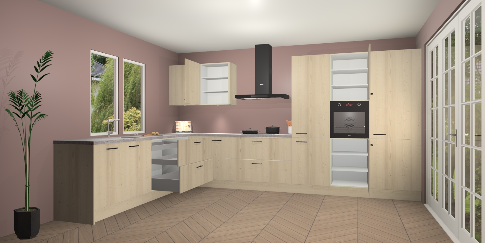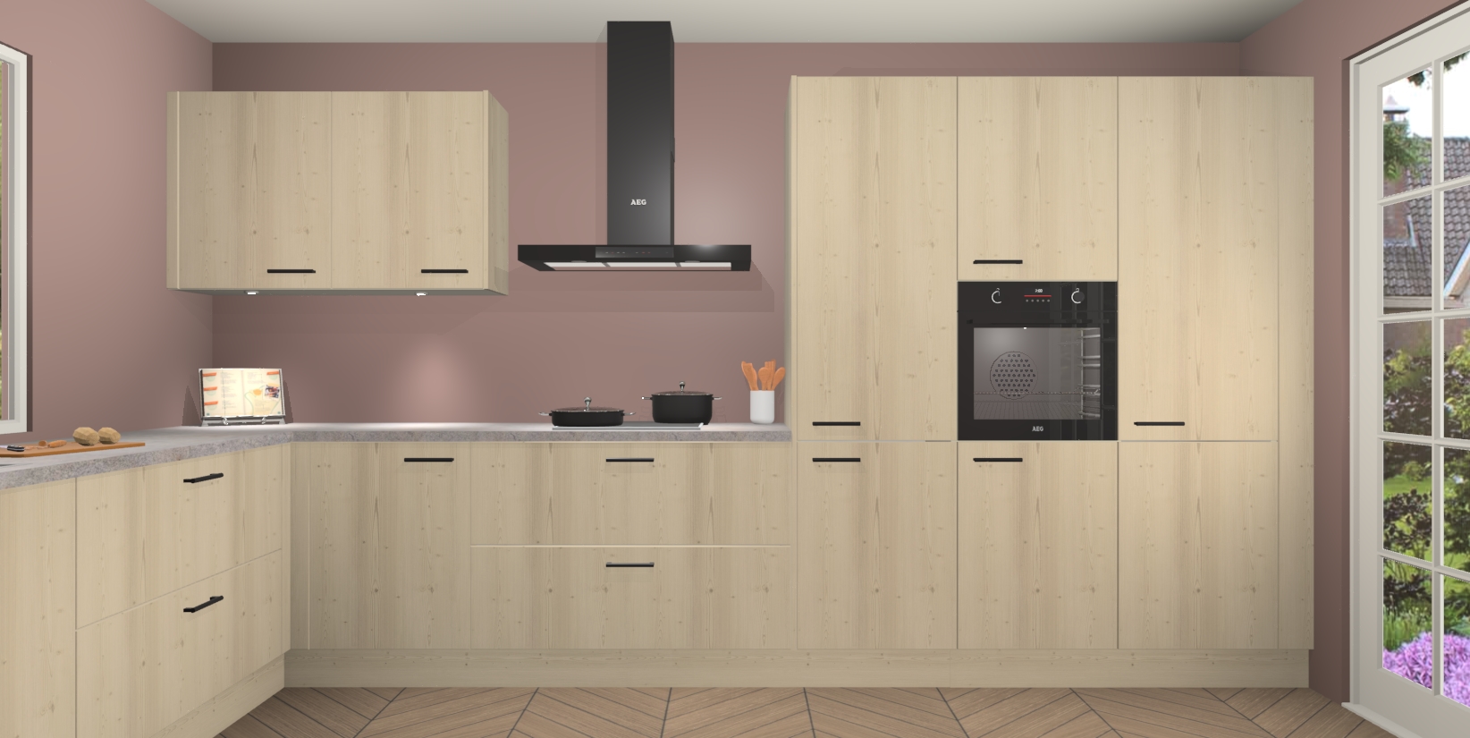Kom dichtbij de perfecte keuken van uw dromen met de Vuren keuken Debrecen. Met een prachtige houtlook en eigentijds ontwerp, straalt deze keuken warmte en sfeer uit. Of u nu liefhebber bent van traditionele of moderne stijlen, er is genoeg ruimte om aan al uw behoeften te voldoen.