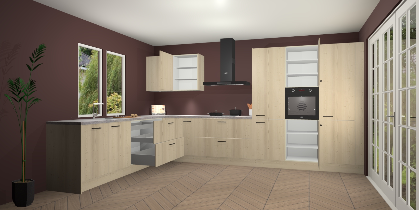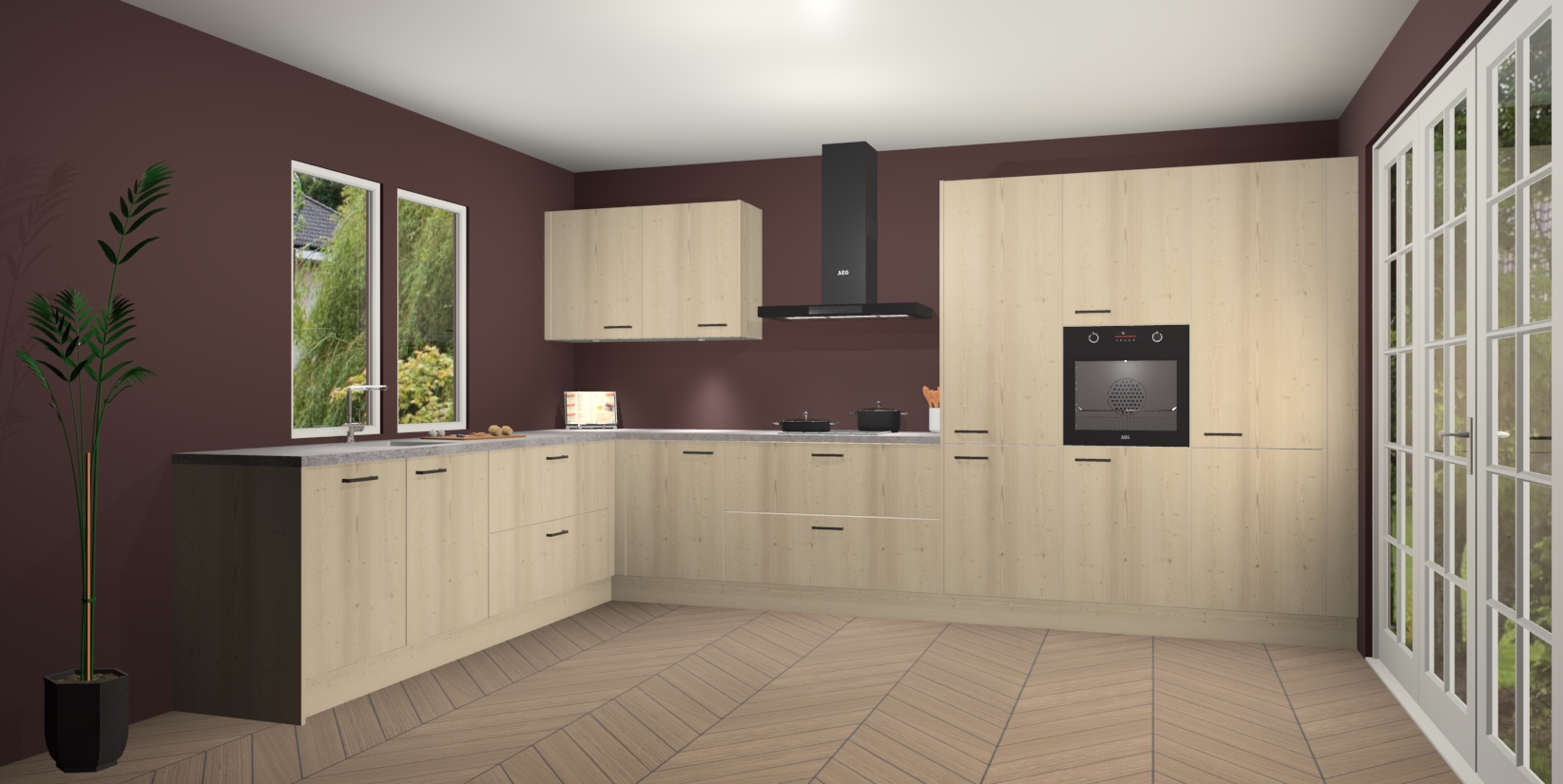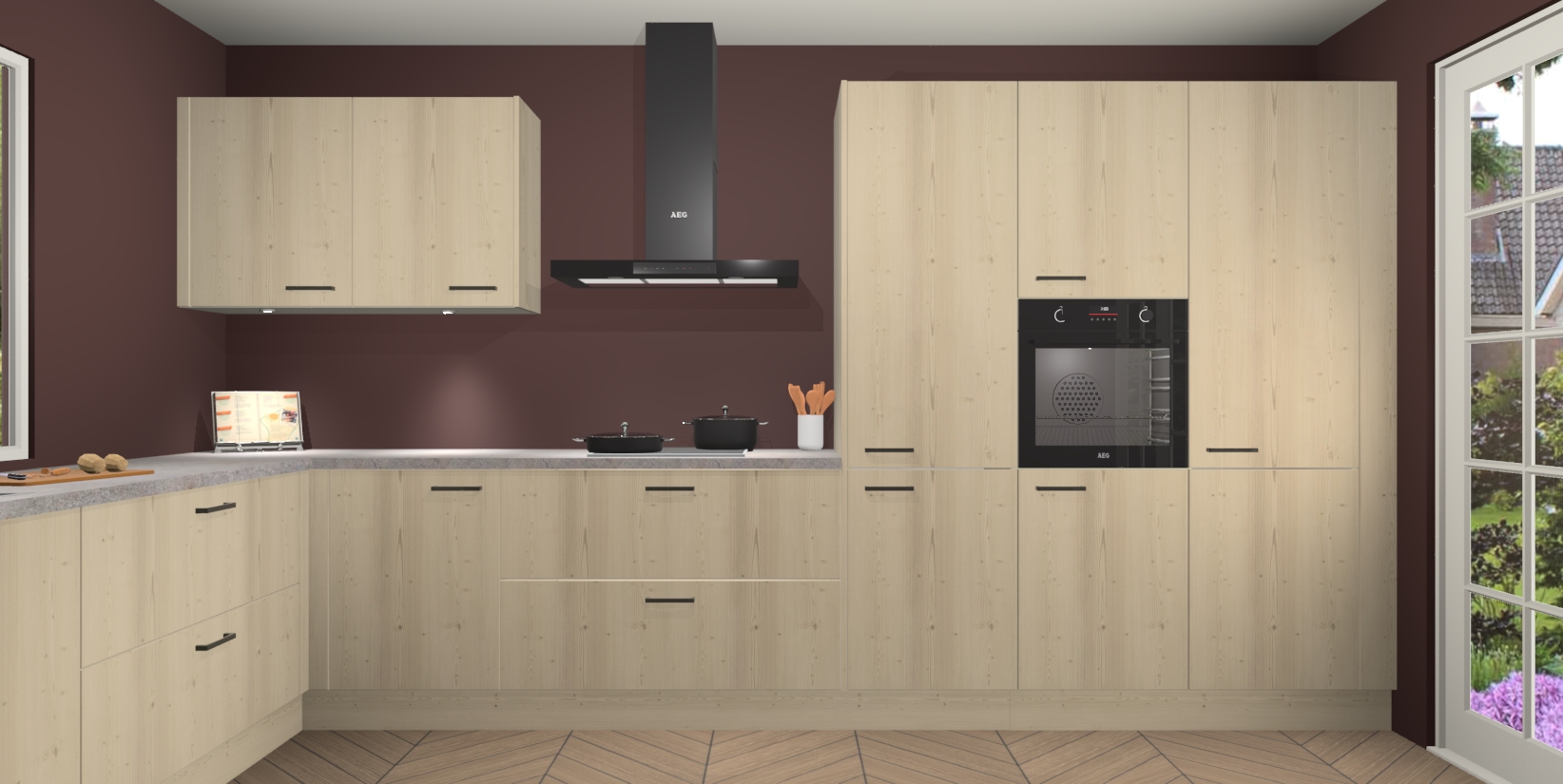 Kom dichtbij de perfecte keuken van uw dromen met de Vuren keuken Debrecen. Met een prachtige houtlook en eigentijds ontwerp, straalt deze keuken warmte en sfeer uit. Of u nu liefhebber bent van traditionele of moderne stijlen, er is genoeg ruimte om aan al uw behoeften te voldoen.