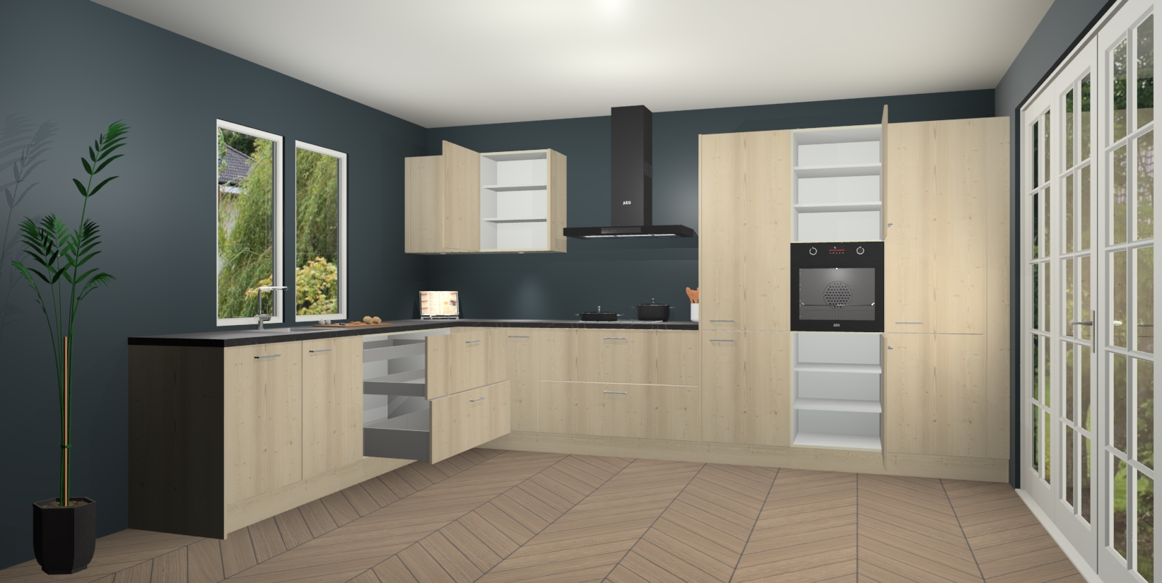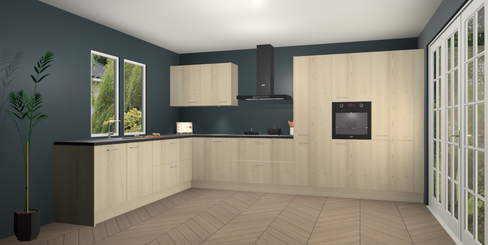 Kom dichtbij de perfecte keuken van uw dromen met de Vuren keuken Debrecen. Met een prachtige houtlook en eigentijds ontwerp, straalt deze keuken warmte en sfeer uit. Of u nu liefhebber bent van traditionele of moderne stijlen, er is genoeg ruimte om aan al uw behoeften te voldoen.
