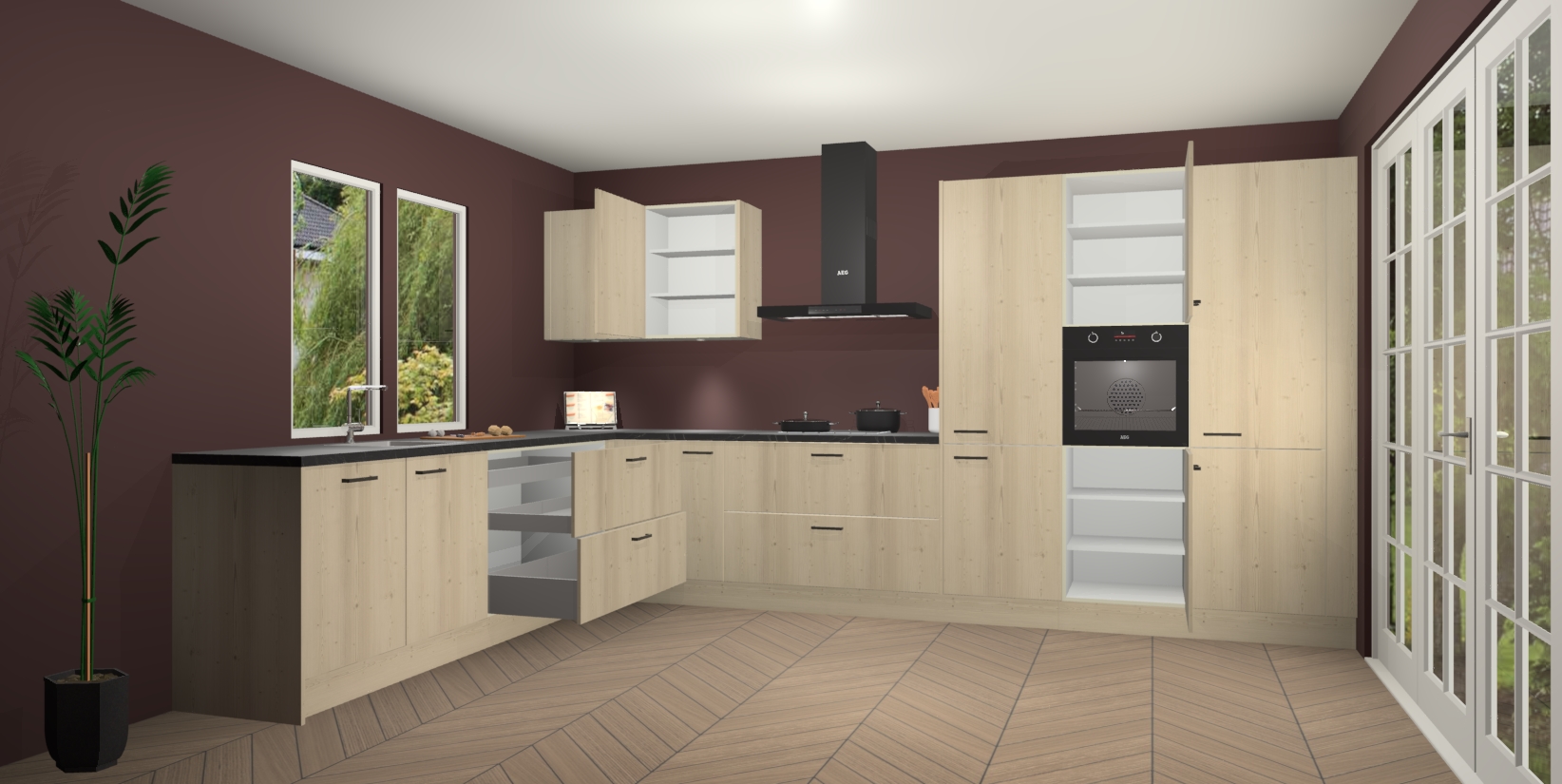 Kom dichtbij de perfecte keuken van uw dromen met de Vuren keuken Debrecen. Met een prachtige houtlook en eigentijds ontwerp, straalt deze keuken warmte en sfeer uit. Of u nu liefhebber bent van traditionele of moderne stijlen, er is genoeg ruimte om aan al uw behoeften te voldoen.