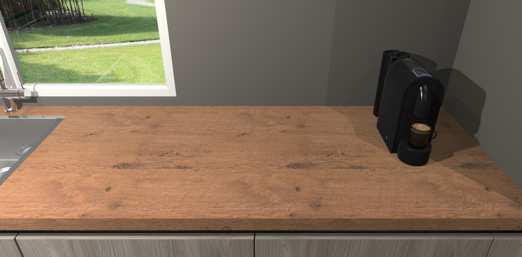- Bij een hoekwerkblad zijn de hoeken in gevreesd en op maat gemaakt