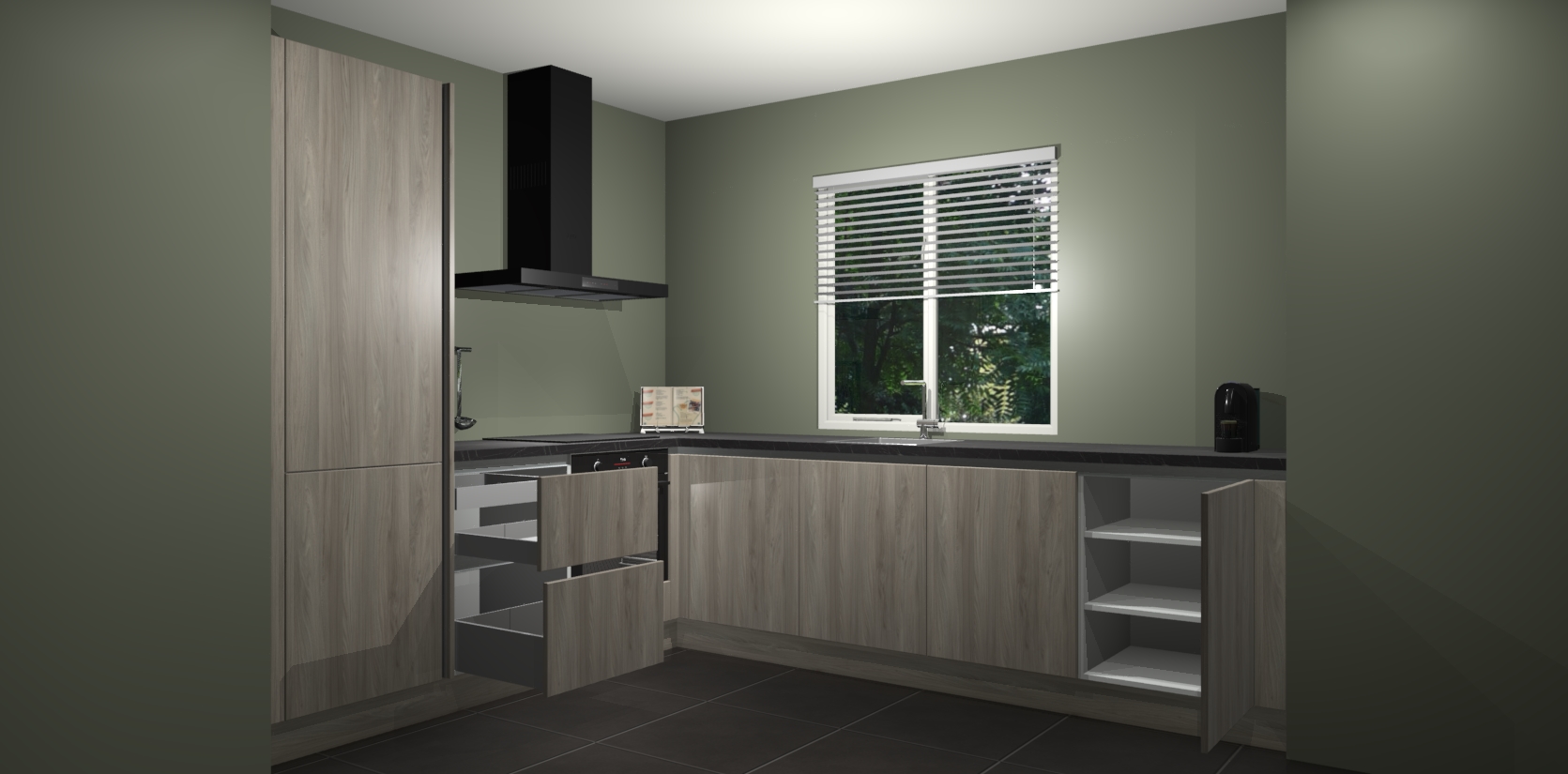 Maak kennis met de Vuren keuken Doha - de perfecte aanvulling voor uw moderne keuken! Ervaar tijdloos design, elegantie en een chique uitstraling met onze zwarte handgrepen, soft-close deuren en veel opbergruimte. Dit alles wordt aangeboden tegen een vaste lage prijs voor ongeëvenaarde Duitse keukenkwaliteit!
