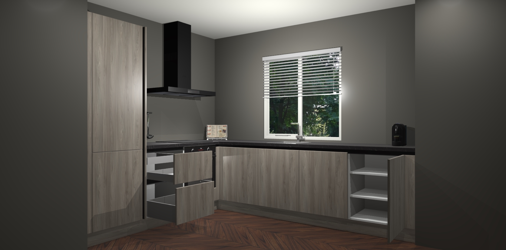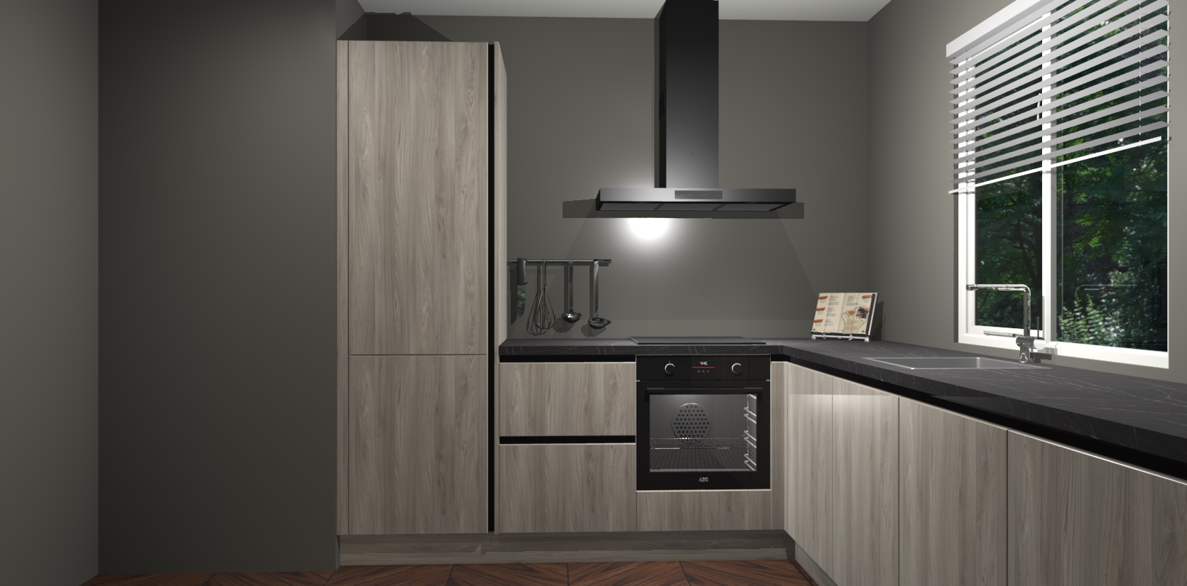 Maak kennis met de Vuren keuken Doha - de perfecte aanvulling voor uw moderne keuken! Ervaar tijdloos design, elegantie en een chique uitstraling met onze zwarte handgrepen, soft-close deuren en veel opbergruimte. Dit alles wordt aangeboden tegen een vaste lage prijs voor ongeëvenaarde Duitse keukenkwaliteit!