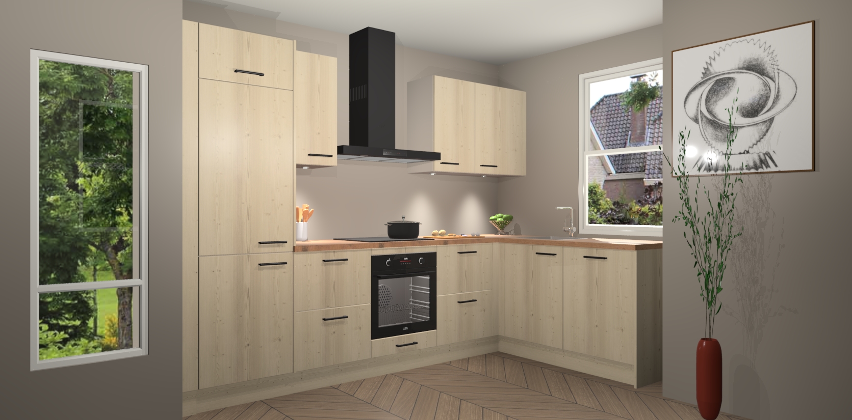 De Vuren keuken Geneve is precies wat u nodig heeft als u op zoek bent naar modern design, versmolten met tijdloze schoonheid. De strakke afwerking voegt klasse toe terwijl het toch een uitnodigende sfeer behoudt; zeker om zowel gasten als uzelf te inspireren om in stijl te gaan koken! En nog beter, het zal uw budget niet breken - dus waarom wachten? Met de Vuren keuken Geneve bent u verzekerd van kwaliteit zonder in te leveren op de prijs!