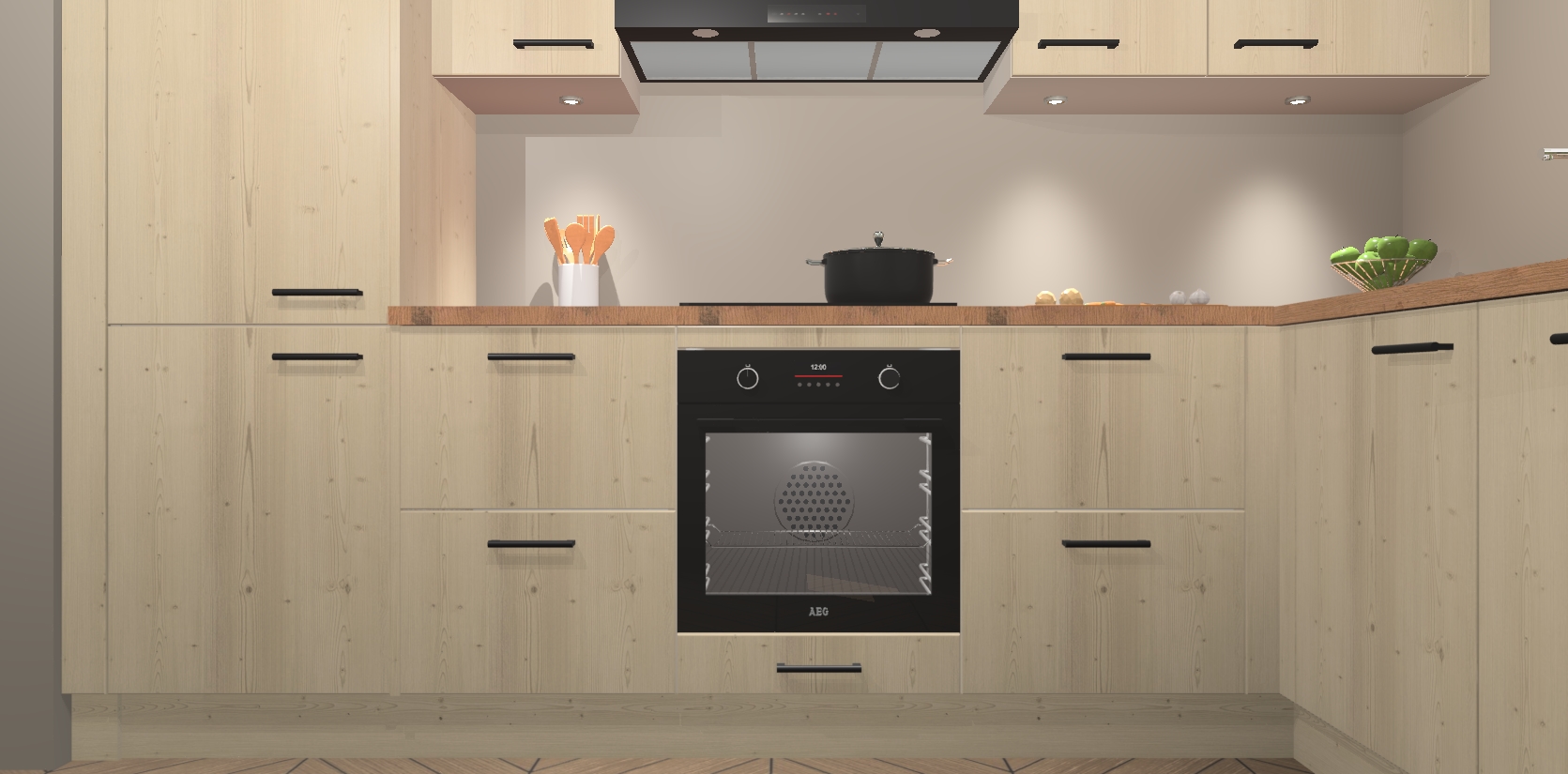 De Vuren keuken Geneve is uitgerust met 5 inbouwapparaten - een oven, inductiekookplaat, afzuigkap, vaatwasser en koelkast - voor al uw kook- en bewaarbehoeftes. U kunt deze apparaten desgewenst eenvoudig upgraden naar AEG of de oven omruilen voor een combimagnetron na het plaatsen van uw bestelling. En met de soft close deuren, voldoende opbergruimte en kasten die voorgemonteerd worden geleverd, bent u in een mum van tijd klaar om heerlijke maaltijden te bereiden!