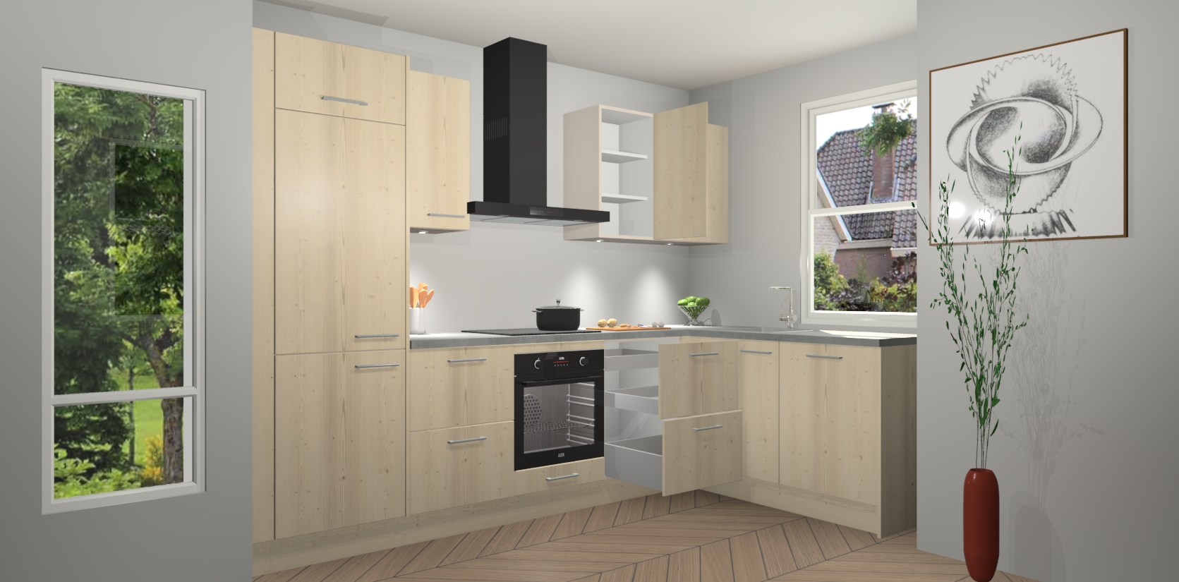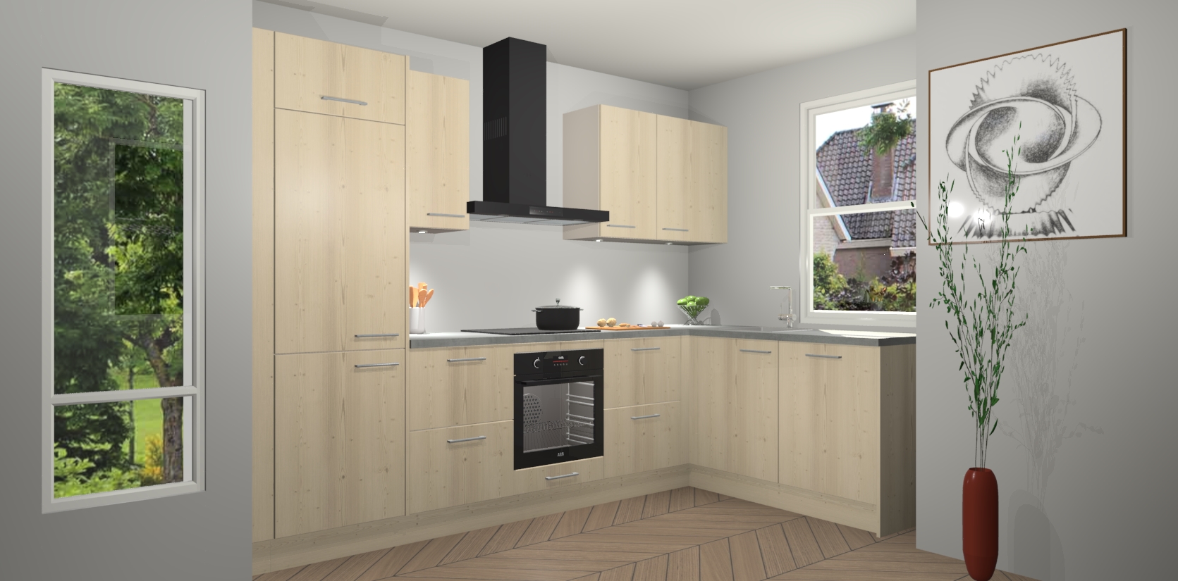 De Vuren keuken Geneve is precies wat u nodig heeft als u op zoek bent naar modern design, versmolten met tijdloze schoonheid. De strakke afwerking voegt klasse toe terwijl het toch een uitnodigende sfeer behoudt; zeker om zowel gasten als uzelf te inspireren om in stijl te gaan koken! En nog beter, het zal uw budget niet breken - dus waarom wachten? Met de Vuren keuken Geneve bent u verzekerd van kwaliteit zonder in te leveren op de prijs!