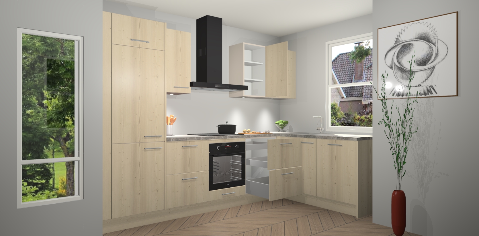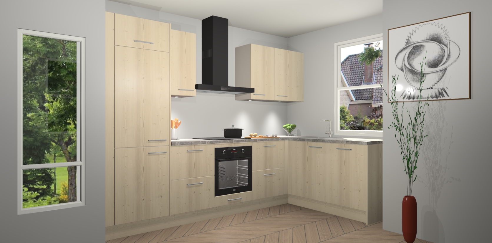 De Vuren keuken Geneve is precies wat u nodig heeft als u op zoek bent naar modern design, versmolten met tijdloze schoonheid. De strakke afwerking voegt klasse toe terwijl het toch een uitnodigende sfeer behoudt; zeker om zowel gasten als uzelf te inspireren om in stijl te gaan koken! En nog beter, het zal uw budget niet breken - dus waarom wachten? Met de Vuren keuken Geneve bent u verzekerd van kwaliteit zonder in te leveren op de prijs!