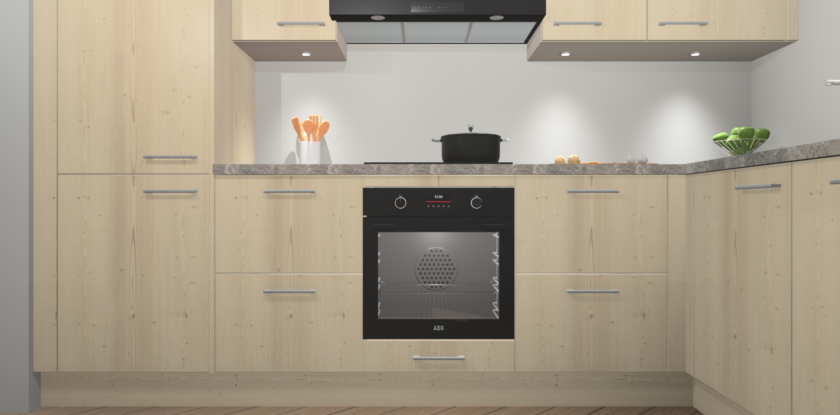 De Vuren keuken Geneve is uitgerust met 5 inbouwapparaten - een oven, inductiekookplaat, afzuigkap, vaatwasser en koelkast - voor al uw kook- en bewaarbehoeftes. U kunt deze apparaten desgewenst eenvoudig upgraden naar AEG of de oven omruilen voor een combimagnetron na het plaatsen van uw bestelling. En met de soft close deuren, voldoende opbergruimte en kasten die voorgemonteerd worden geleverd, bent u in een mum van tijd klaar om heerlijke maaltijden te bereiden!