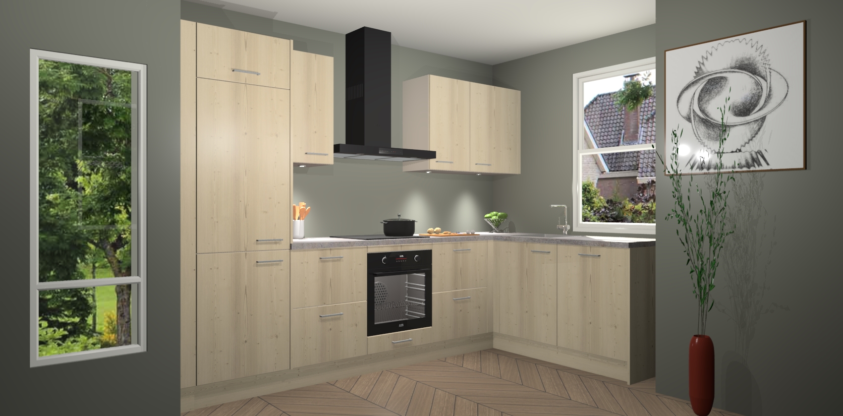 De Vuren keuken Geneve is precies wat u nodig heeft als u op zoek bent naar modern design, versmolten met tijdloze schoonheid. De strakke afwerking voegt klasse toe terwijl het toch een uitnodigende sfeer behoudt; zeker om zowel gasten als uzelf te inspireren om in stijl te gaan koken! En nog beter, het zal uw budget niet breken - dus waarom wachten? Met de Vuren keuken Geneve bent u verzekerd van kwaliteit zonder in te leveren op de prijs!