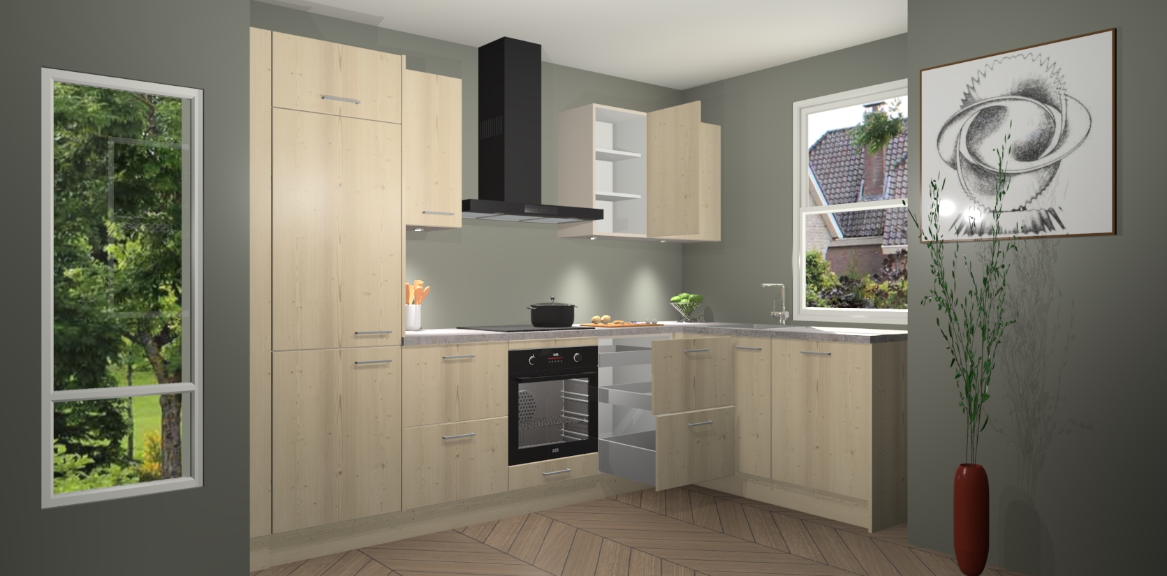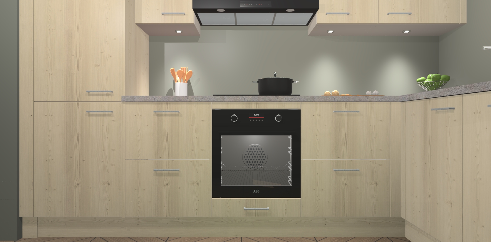 De Vuren keuken Geneve is uitgerust met 5 inbouwapparaten - een oven, inductiekookplaat, afzuigkap, vaatwasser en koelkast - voor al uw kook- en bewaarbehoeftes. U kunt deze apparaten desgewenst eenvoudig upgraden naar AEG of de oven omruilen voor een combimagnetron na het plaatsen van uw bestelling. En met de soft close deuren, voldoende opbergruimte en kasten die voorgemonteerd worden geleverd, bent u in een mum van tijd klaar om heerlijke maaltijden te bereiden!
